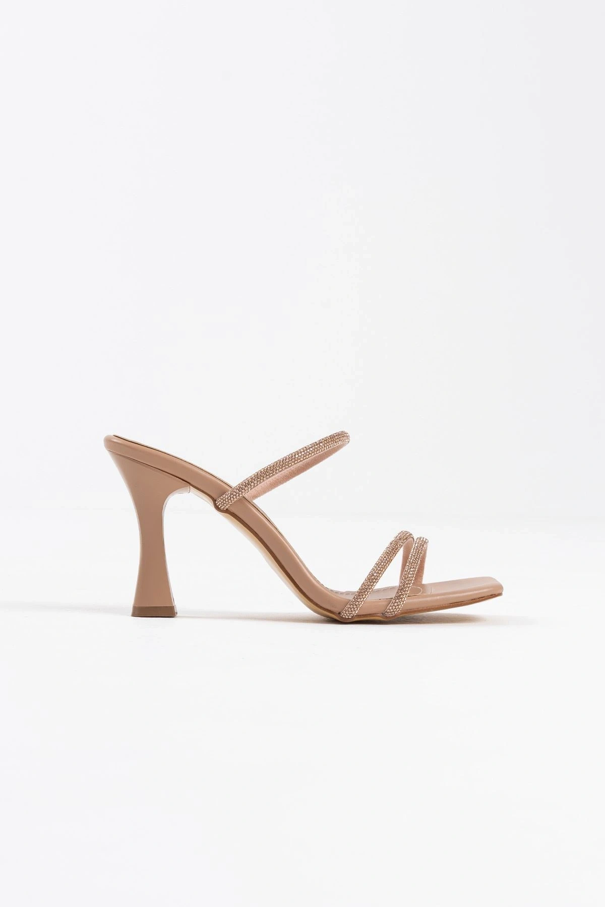 Alvina Nude Taşlı İnce Bantlı Kadın Topuklu Terlik