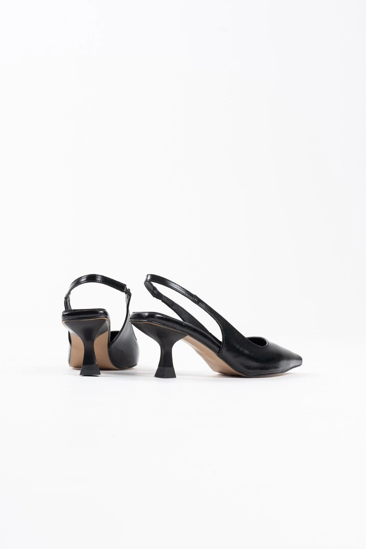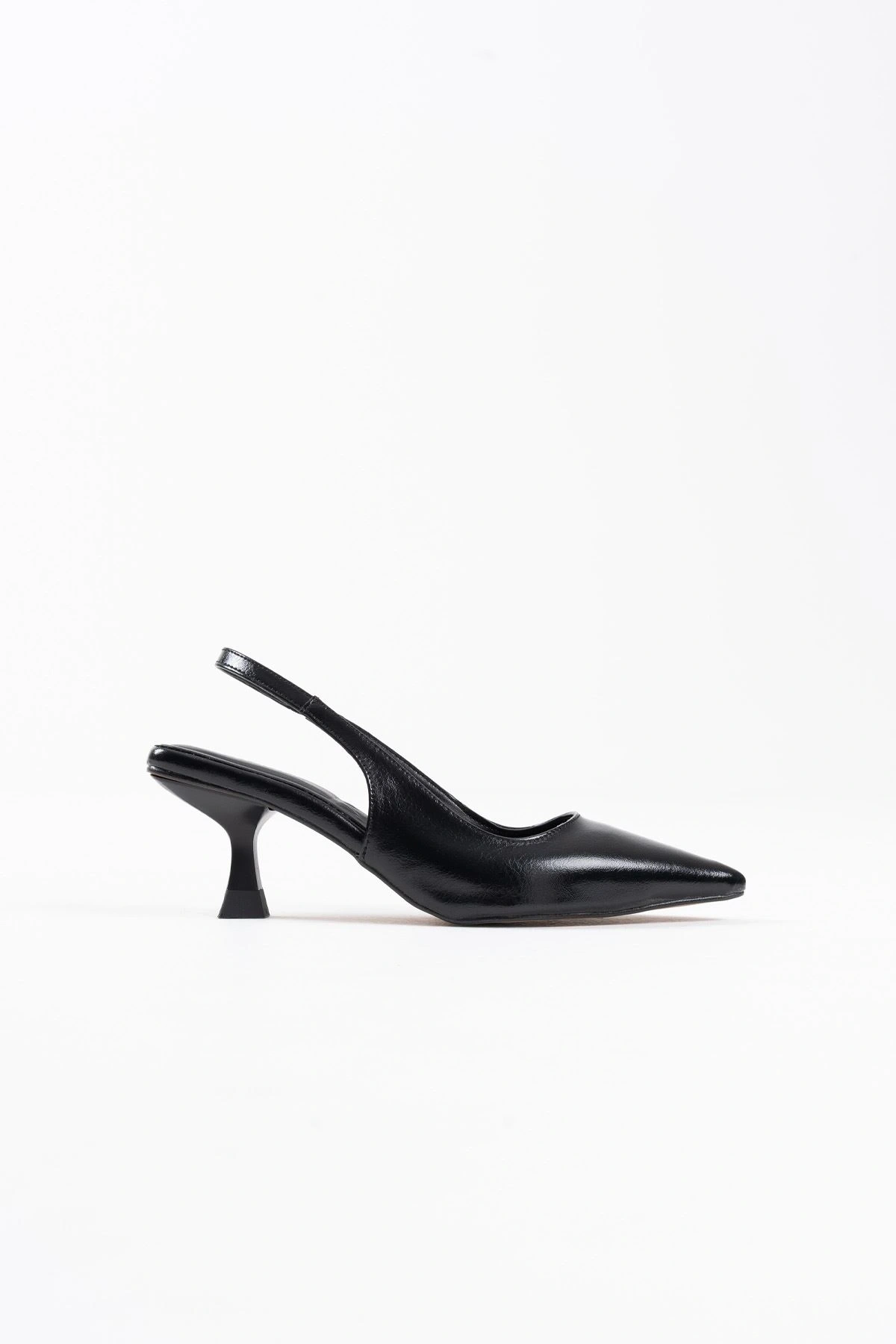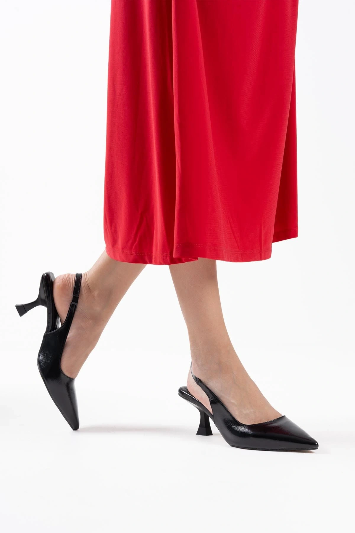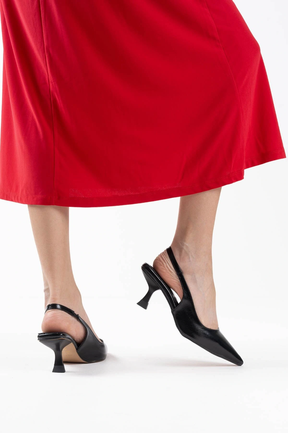 Angelica Kadın Siyah Kırışık Rugan Topuklu Ayakkabı