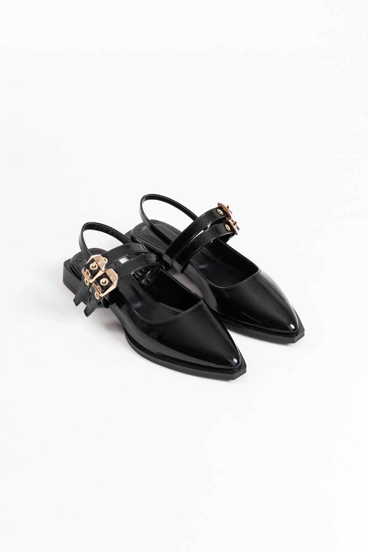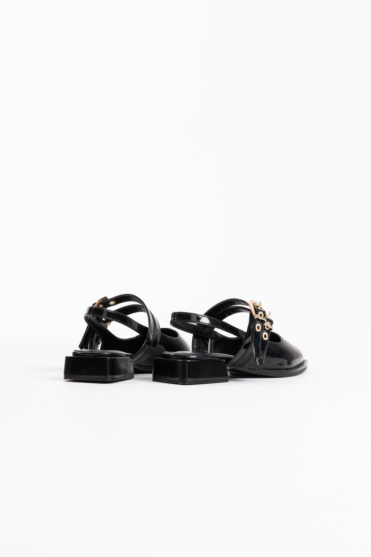 Blues Siyah Rugan Kemer Detaylı Kadın Topuklu Ayakkabı