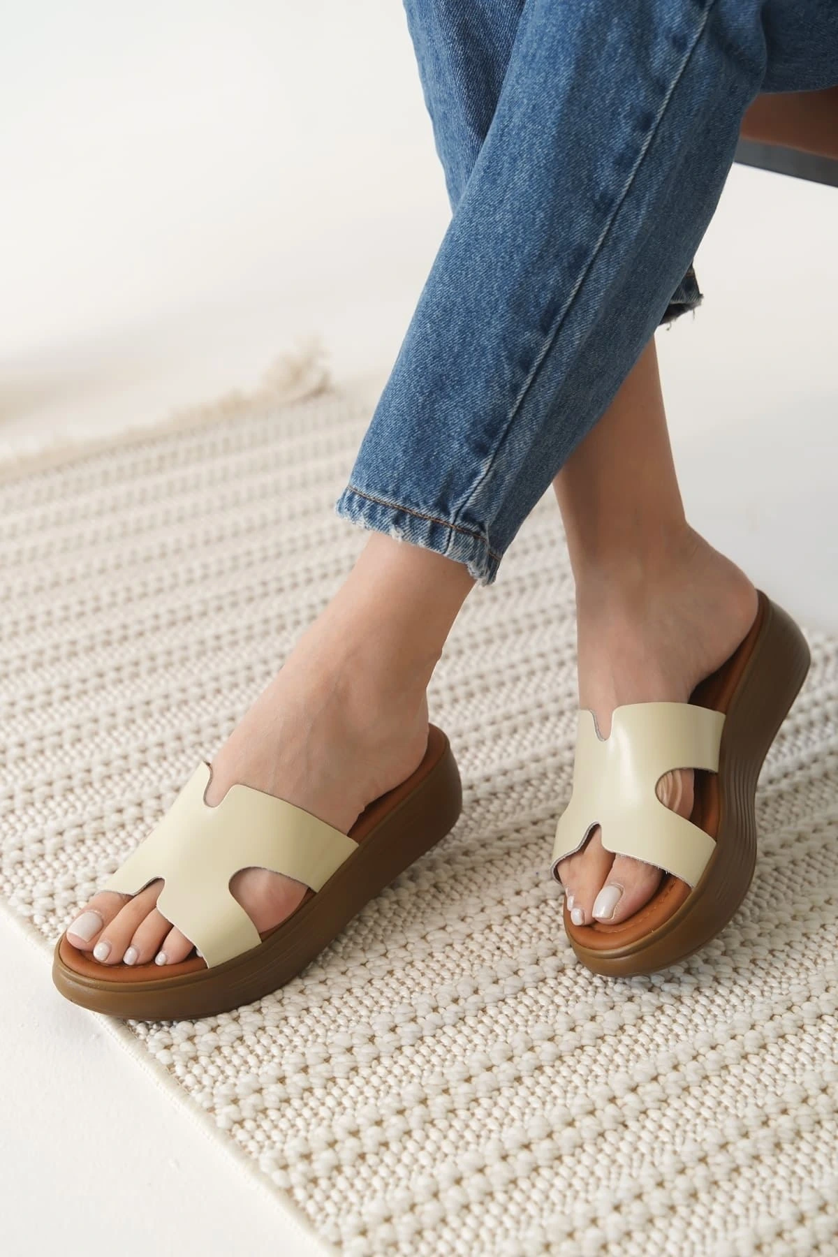 Borlina Bej Hakiki Deri Terlik