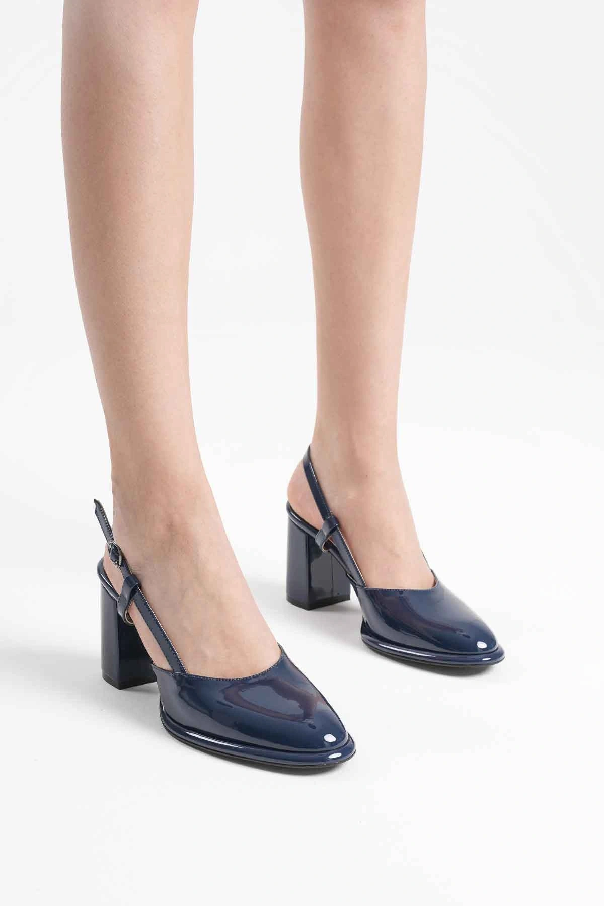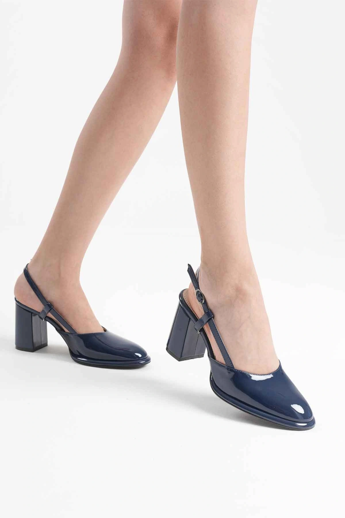 Denma Lacivert Rugan Kadın Topuklu Ayakkabı