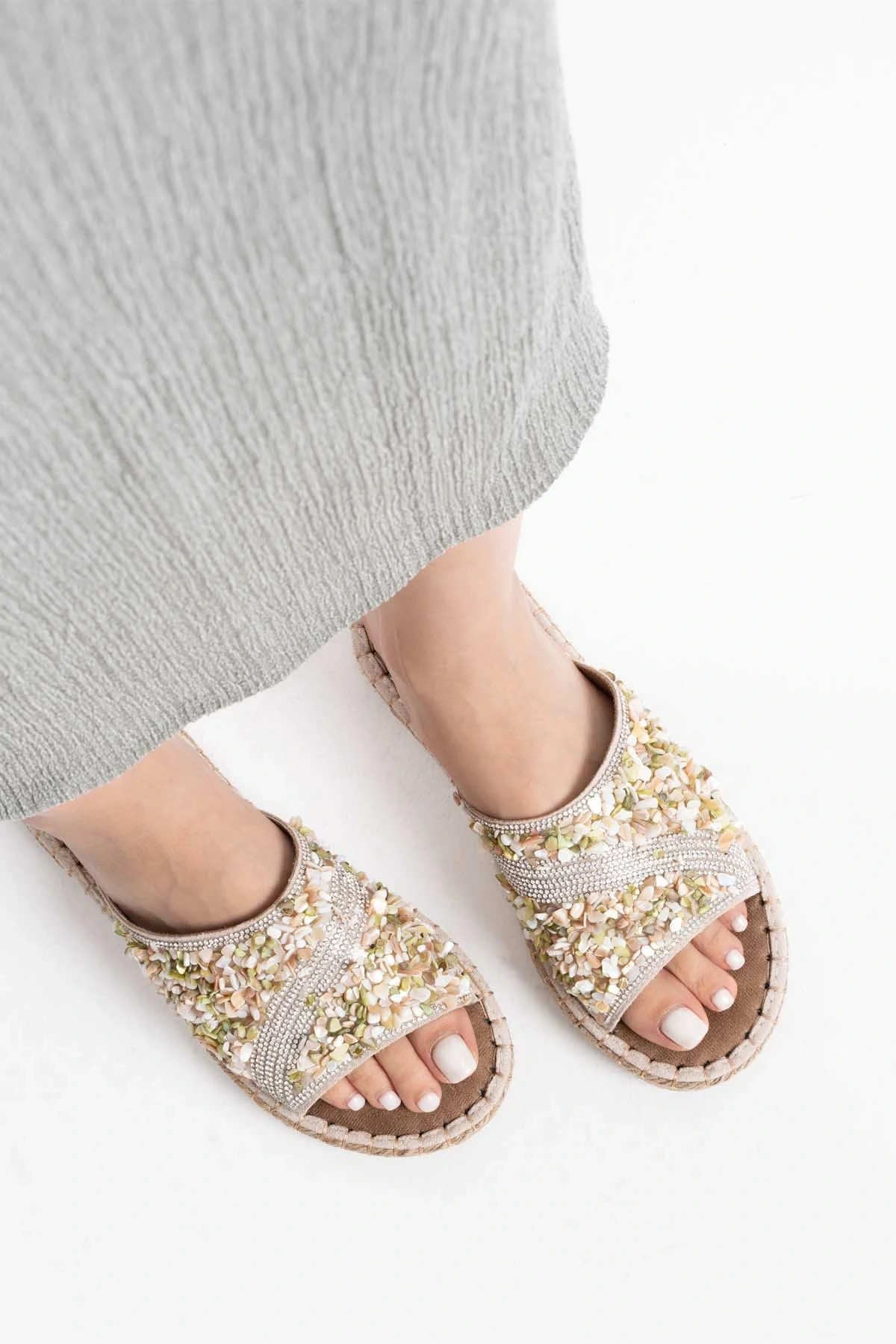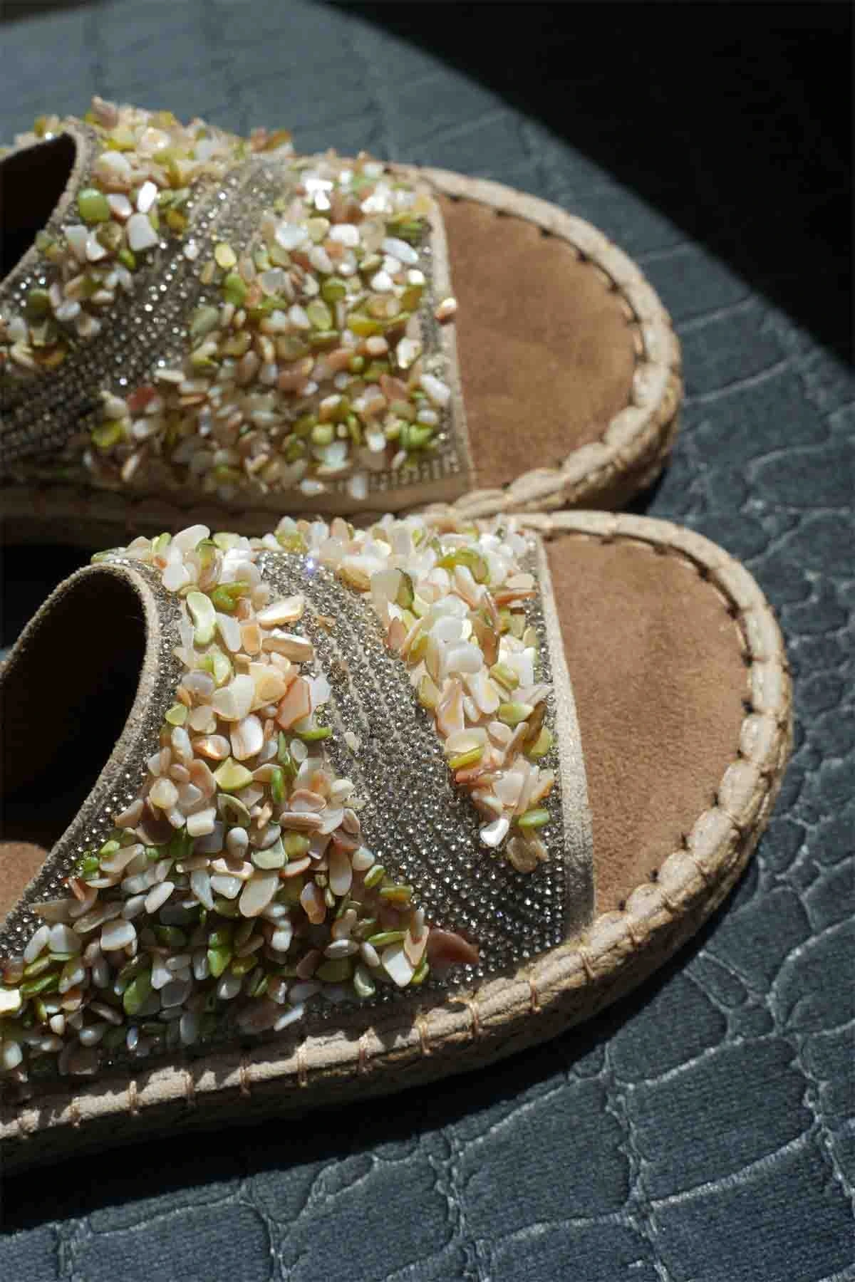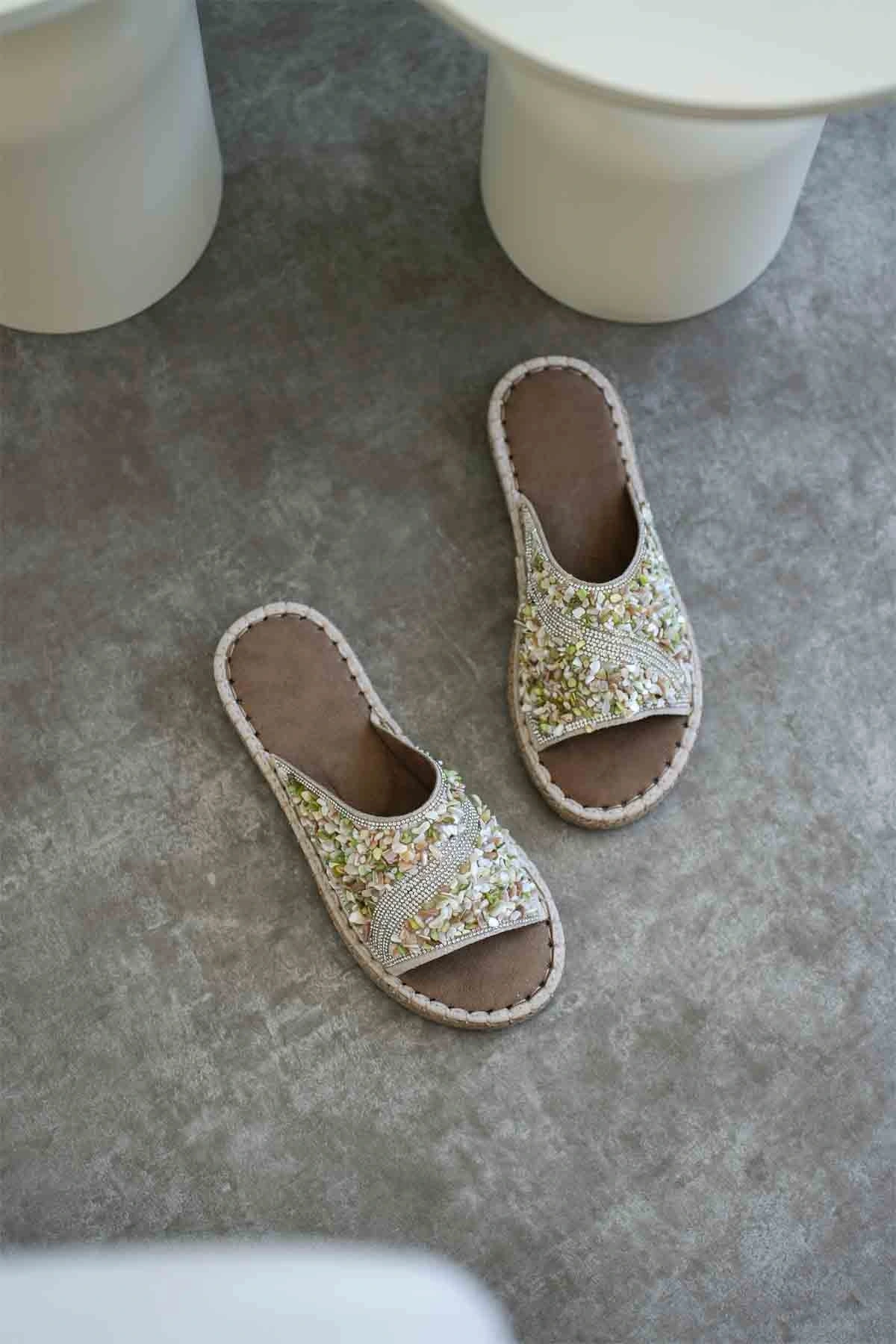 Dennis Kadın Bej Taş İşlemeli Terlik