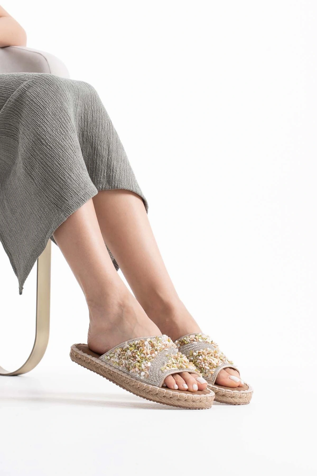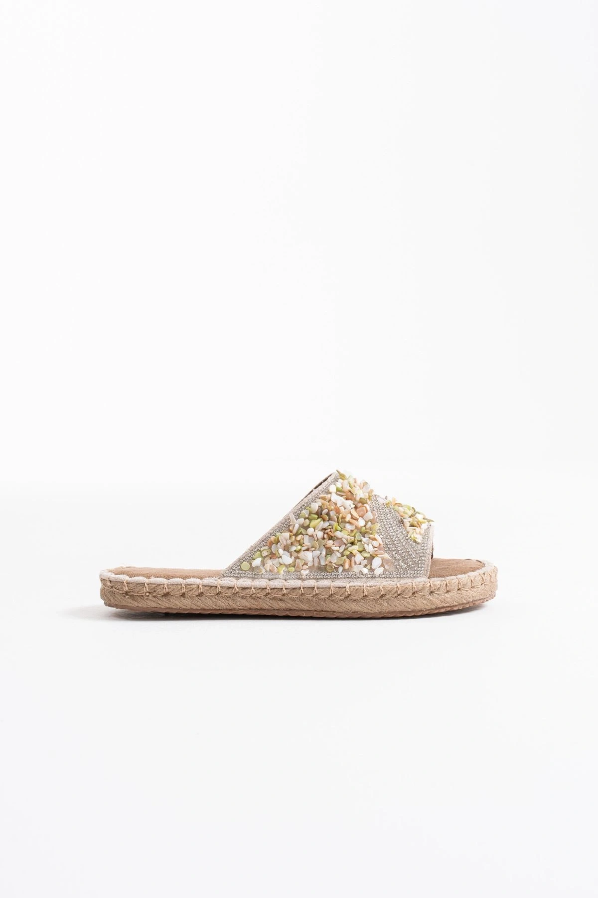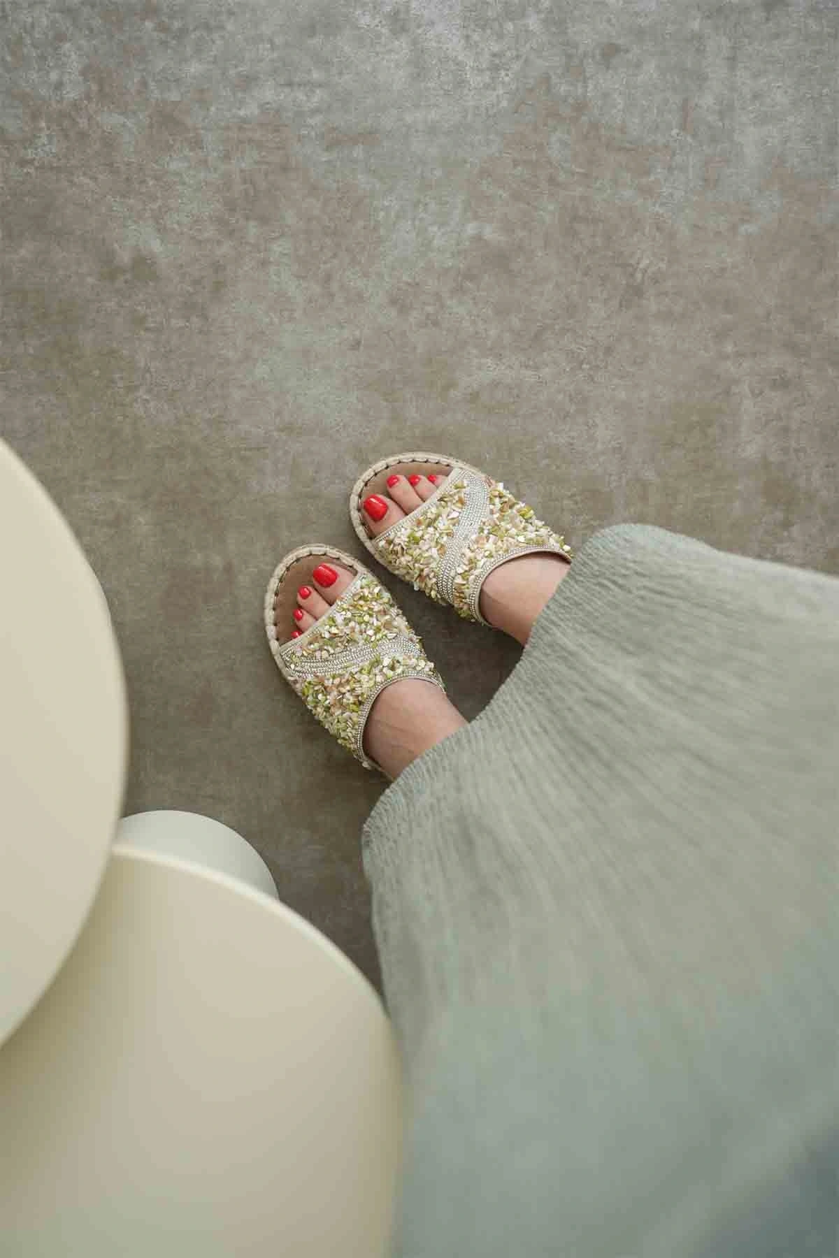 Dennis Kadın Bej Taş İşlemeli Terlik