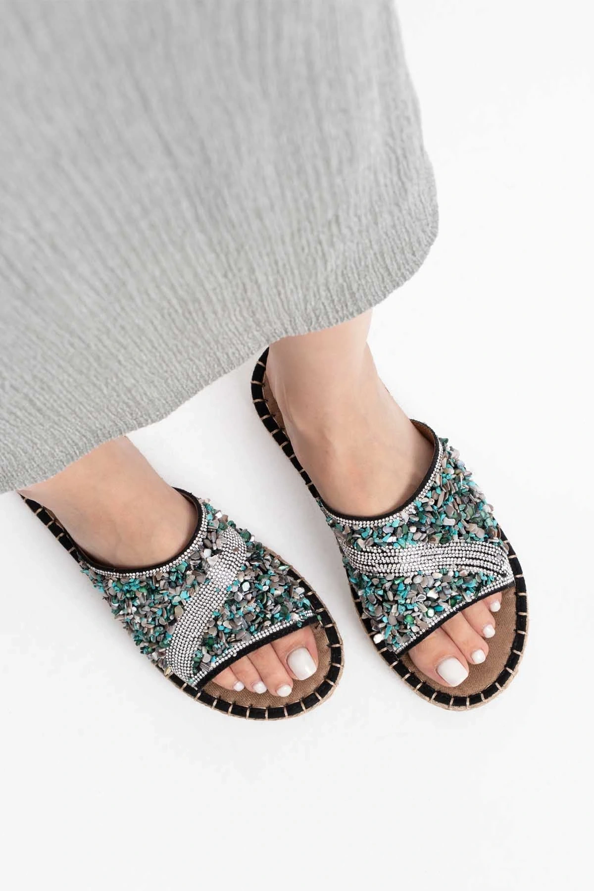 Dennis Kadın Siyah Taş İşlemeli Terlik