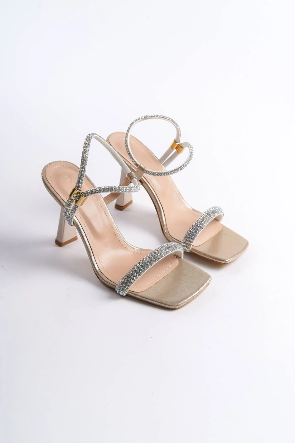 Destina Altın Taşlı Kadın Topuklu Sandalet