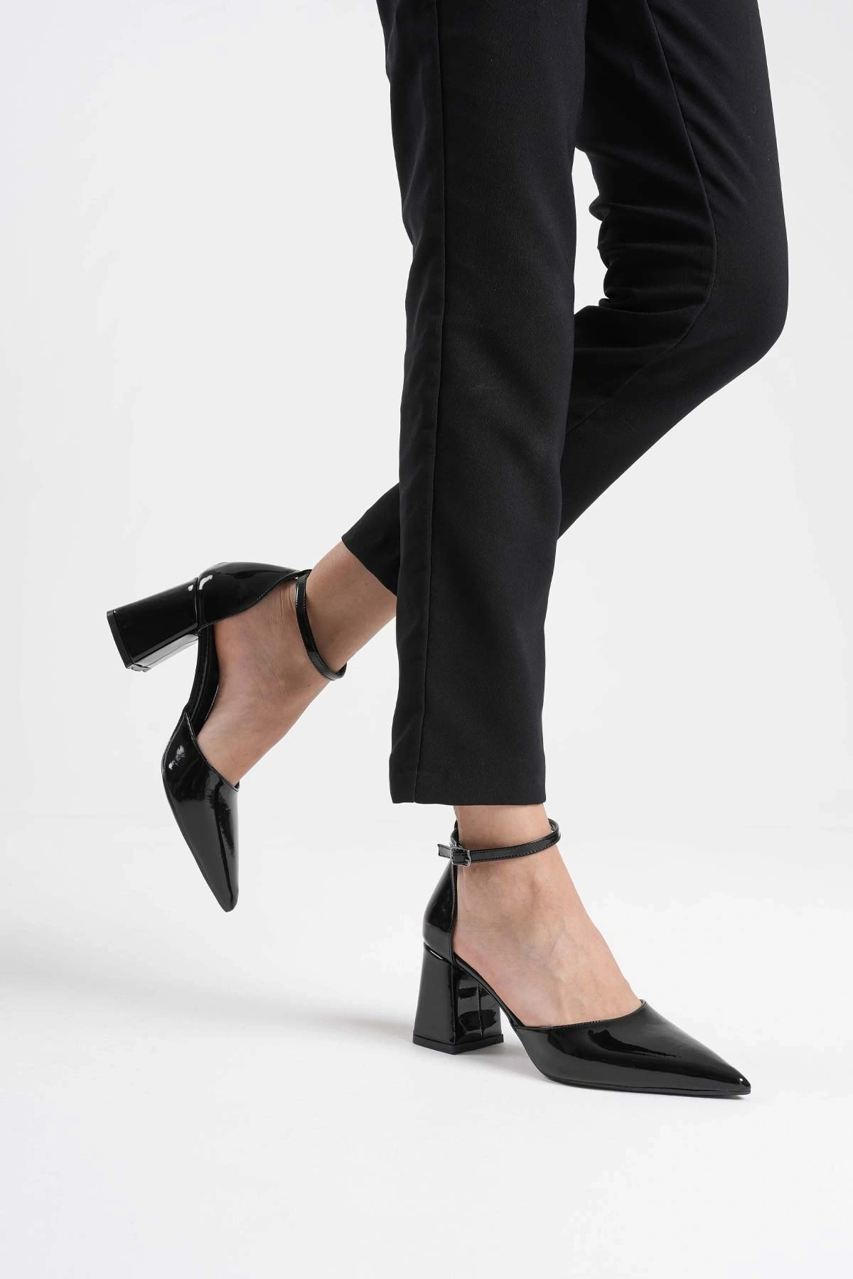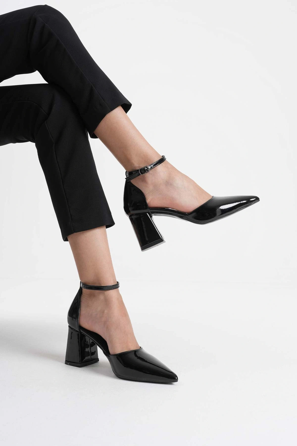 Doren Siyah Rugan Kadın Topuklu Ayakkabı