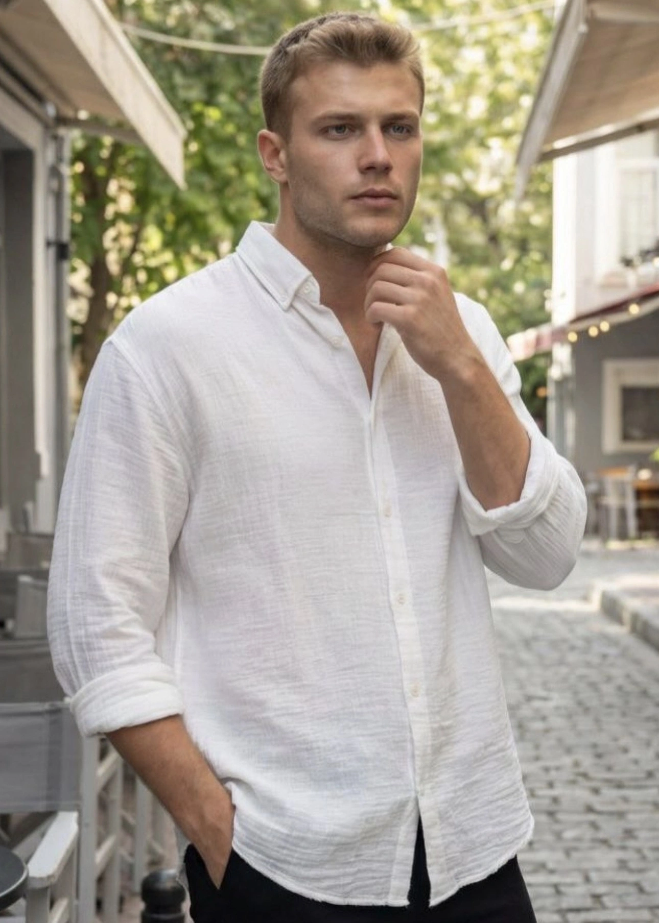 Erkek Beyaz Keten Gömlek