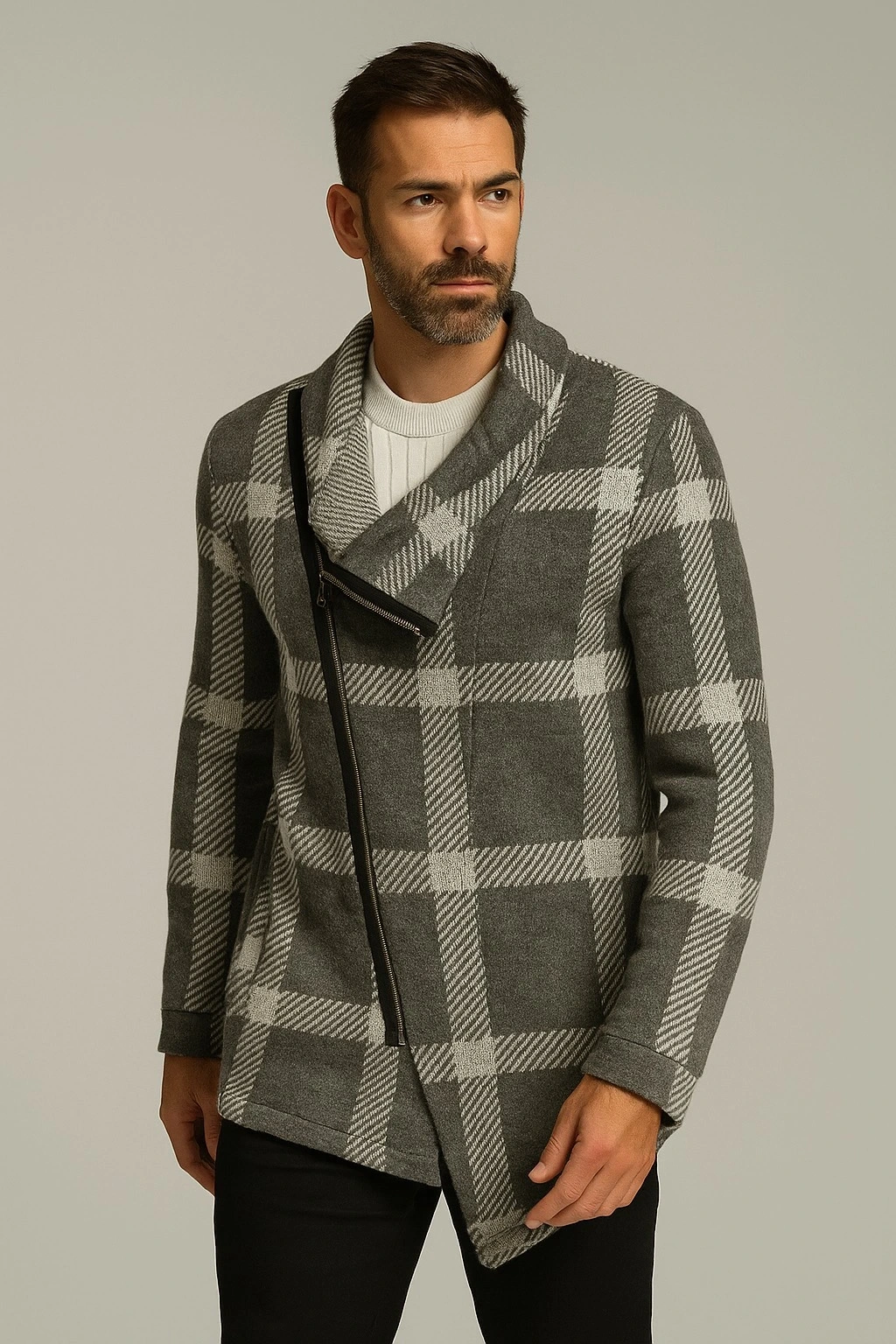Erkek Gri Ekoseli Hırka