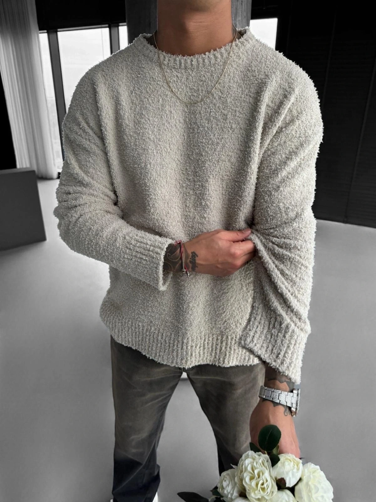 Erkek Bej Peluş Kazak