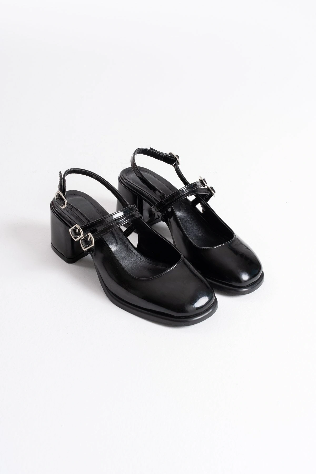 Faye Siyah Rugan Kadın Topuklu Ayakkabı