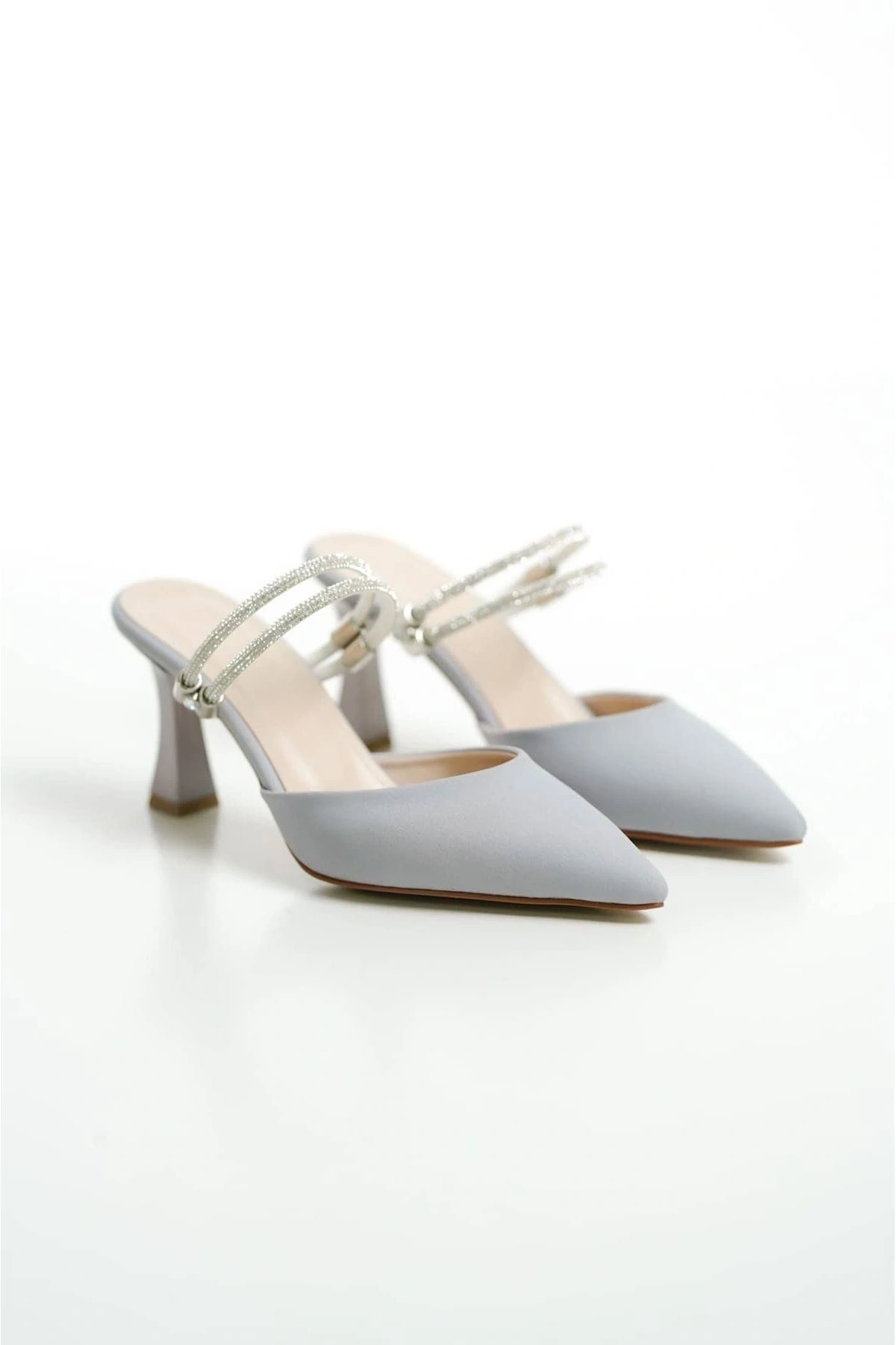 Georgina Kadın Taşlı Gri Saten Topuklu Ayakkabı