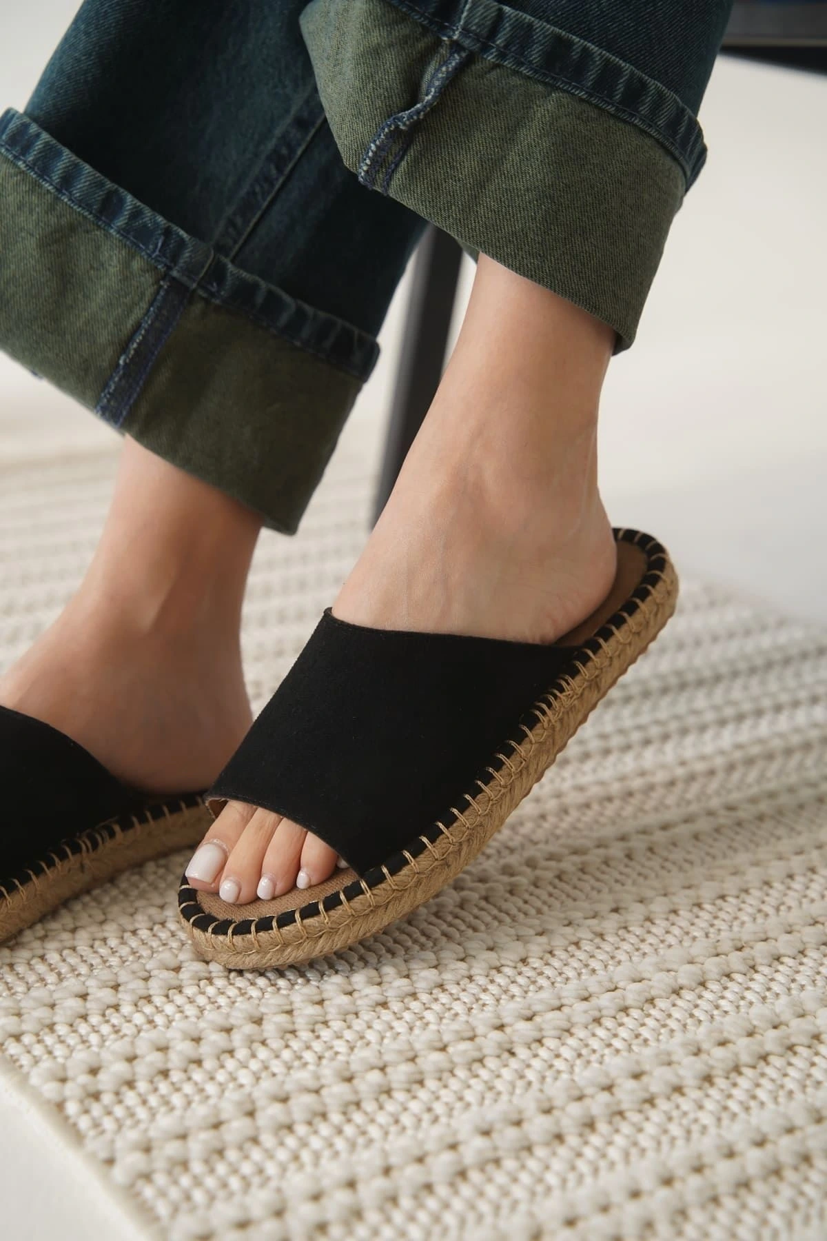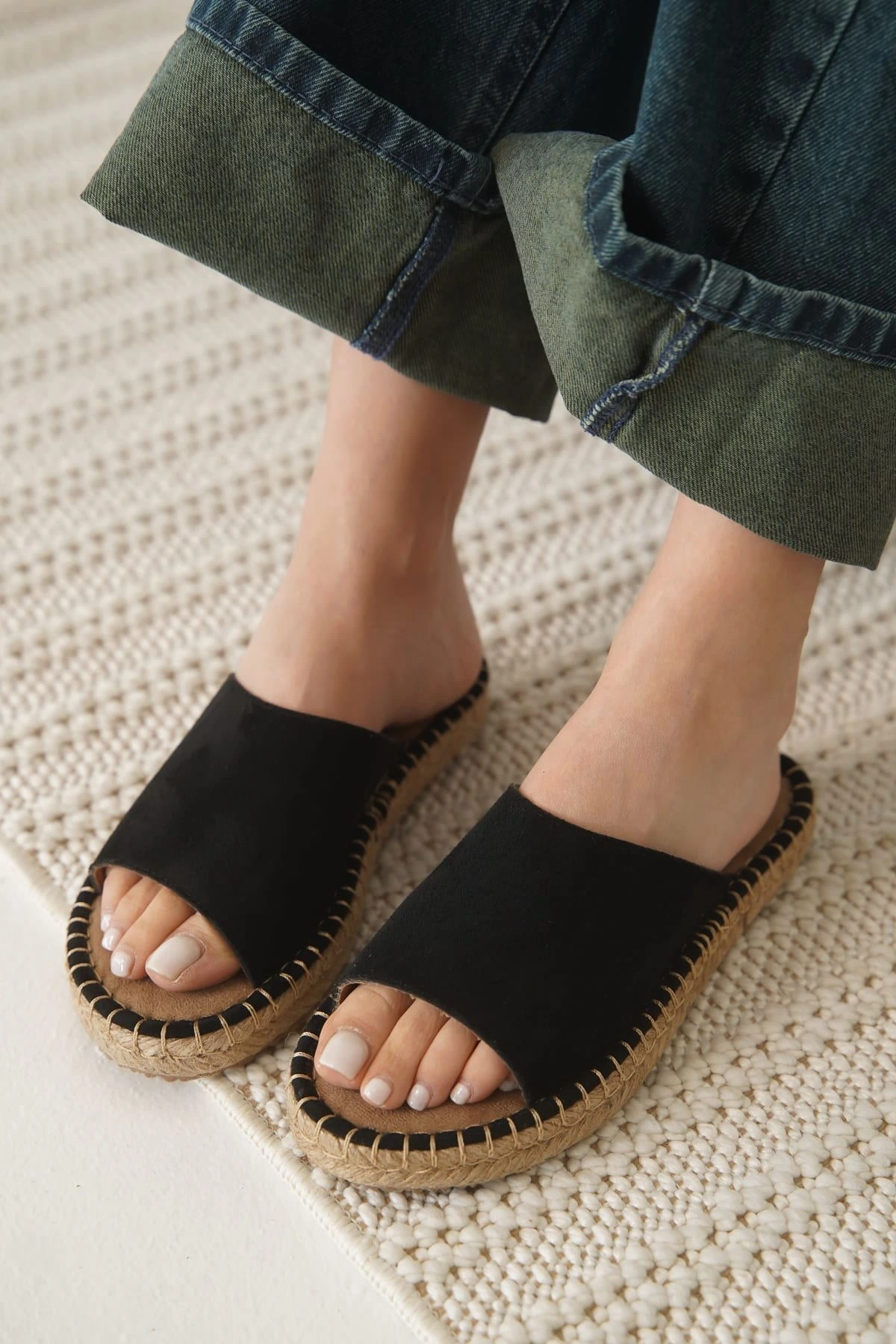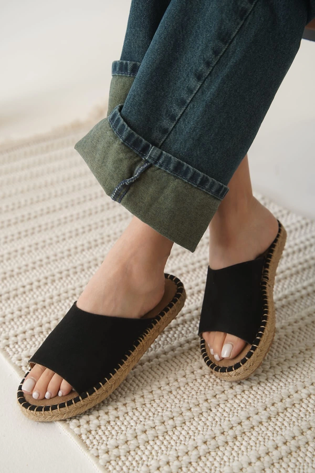 Grey Süet Siyah Kadın Terlik