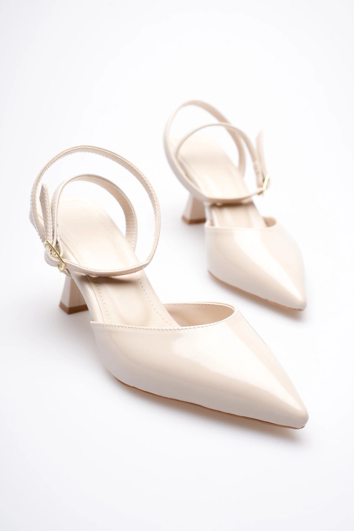 Modern kadın stilinin vazgeçilmez tamamlayıcısı olan bu rugan topuklu ayakkabı, keskin burun formu ve zarif 6 cm topuk yüksekliği ile gün boyu konfor ve estetiği bir araya getirir. Parlak rugan yüzeyi sofistike bir görünüm sunarken, bilekten ayarlanabilir bant detayı ayağı güvenle kavrar ve dengeli bir yürüyüş sağlar.