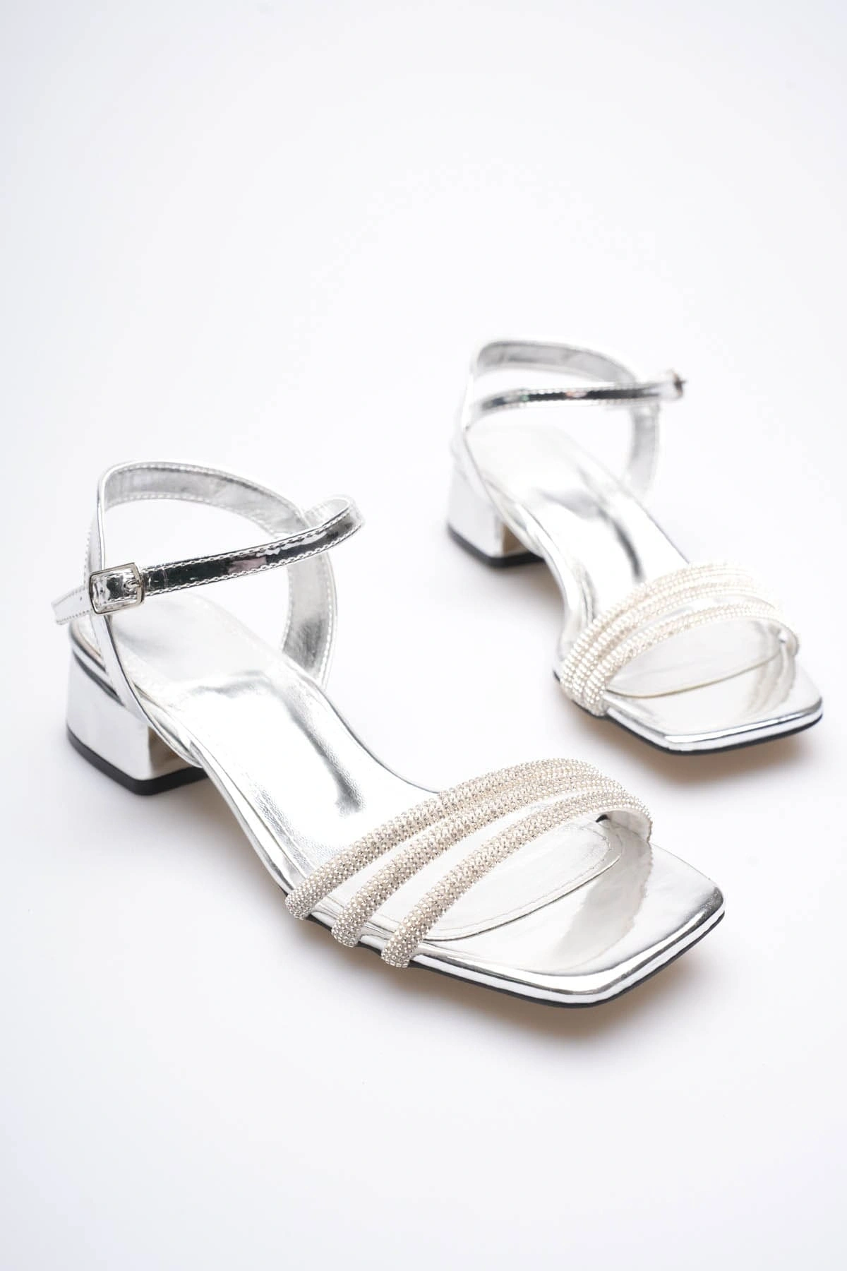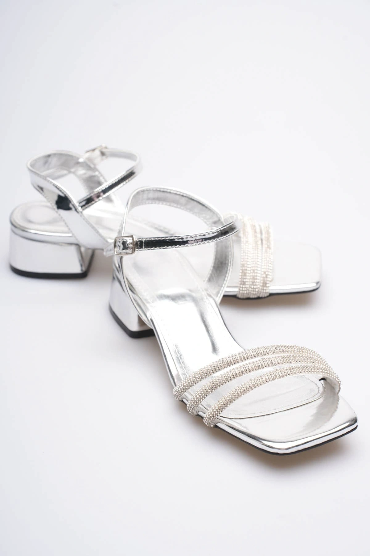 Kadın Gümüş Taş Detaylı Kalın Topuklu Şık Sandalet TR20MY26E
