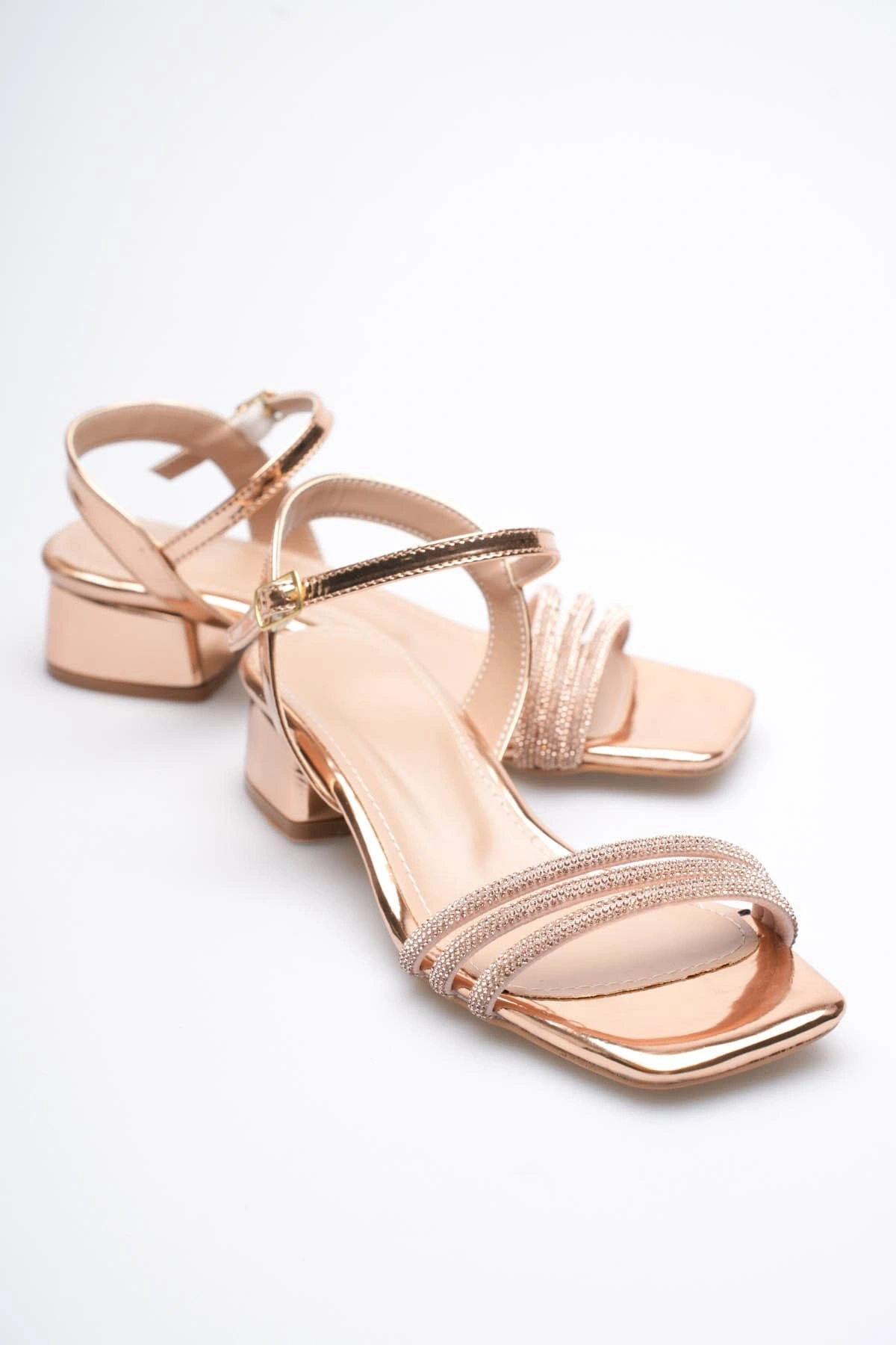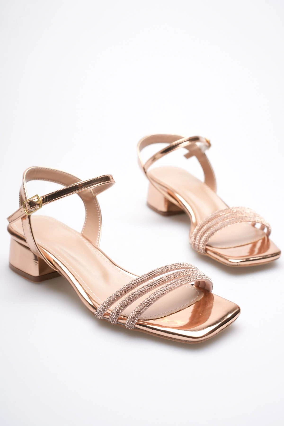 Kadın Rose Gold Taş Detaylı Kalın Topuklu Şık Sandalet TR20MY26F