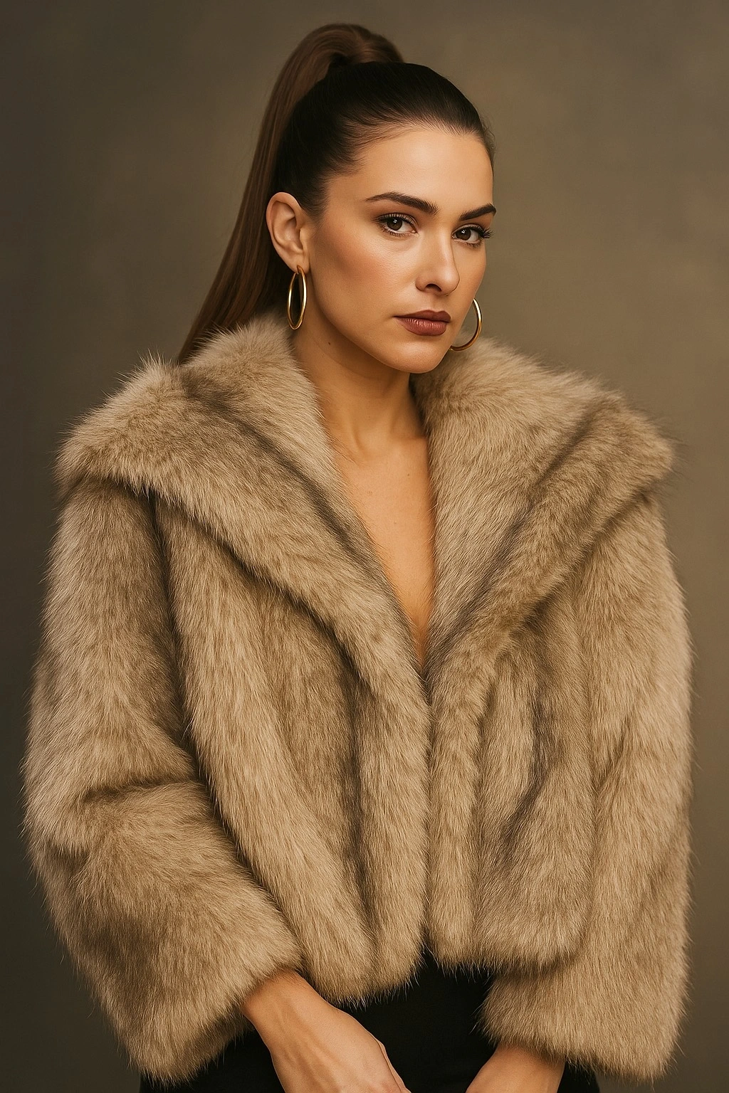Kadın Vizon Kürklü Cepli Kaban