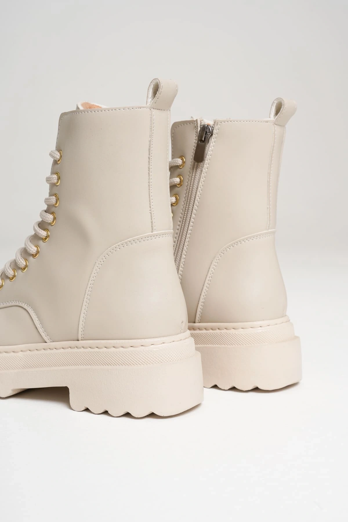 Kaymaz poliüretan tabanı, her adımda güvenli yürüyüş imkânı tanırken, bej rengin yalın şıklığı modern bir ışıltı katar.
