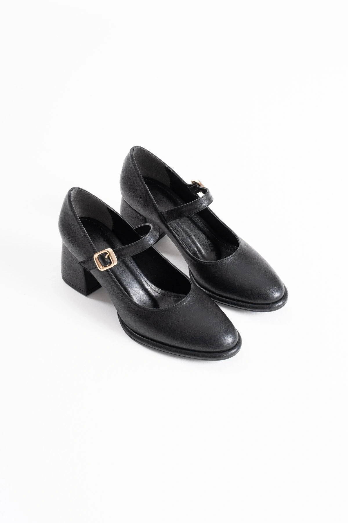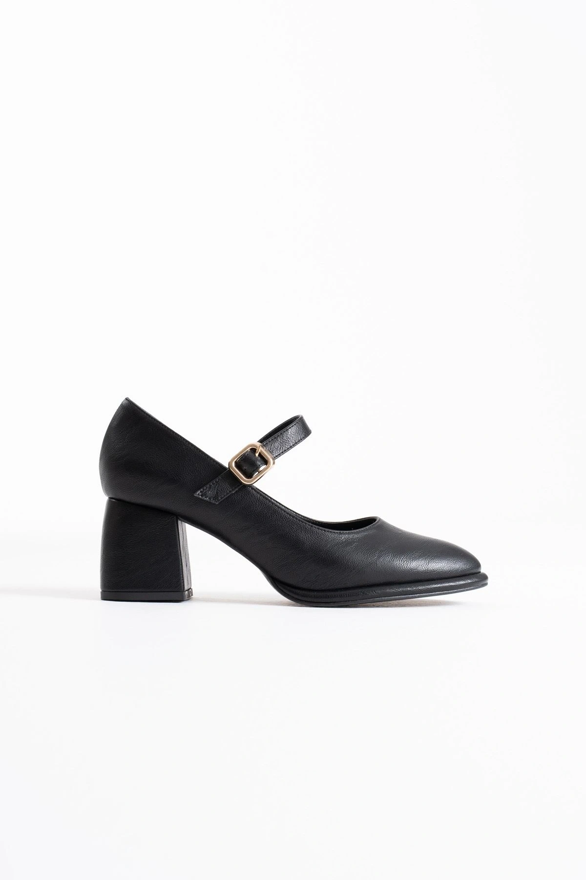 Kelly Siyah Cilt Kadın Topuklu Ayakkabı