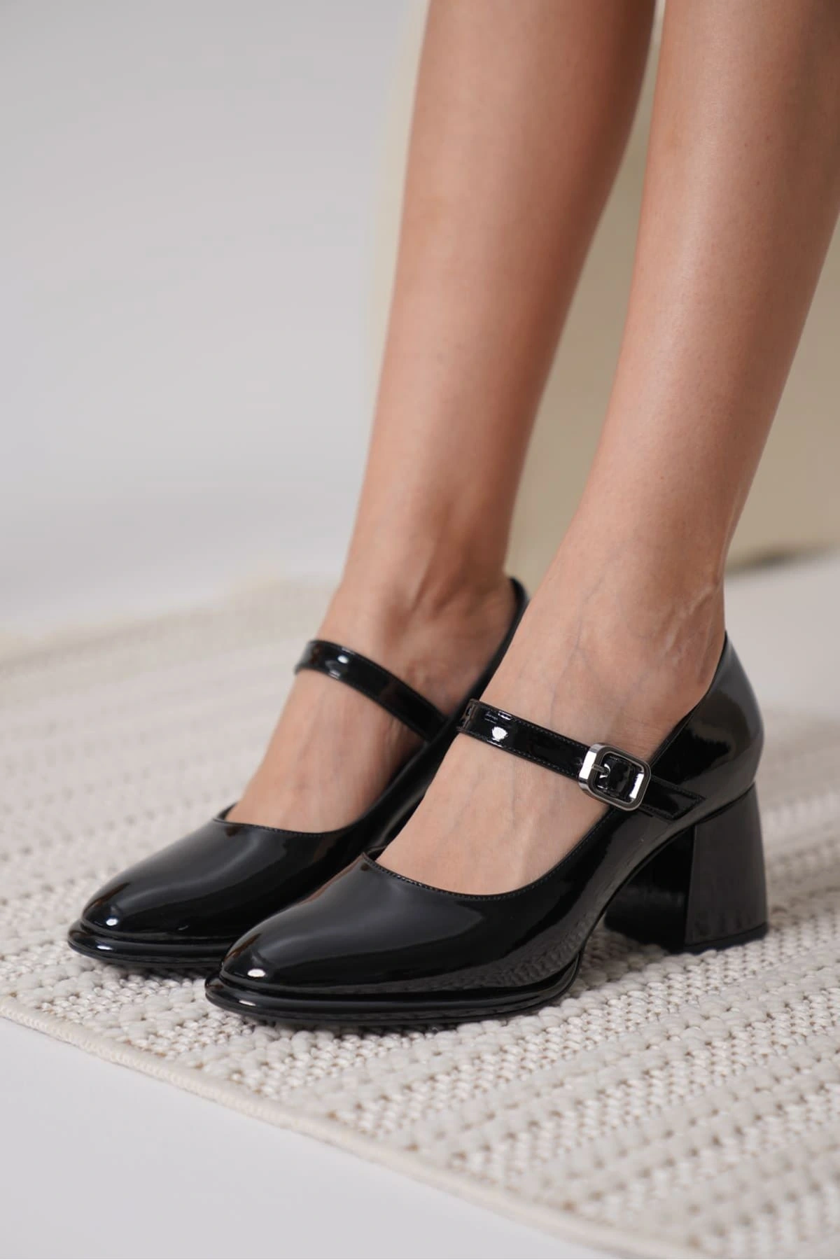 Kelly Siyah Rugan Kadın Topuklu Ayakkabı