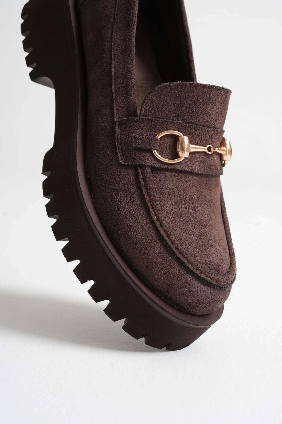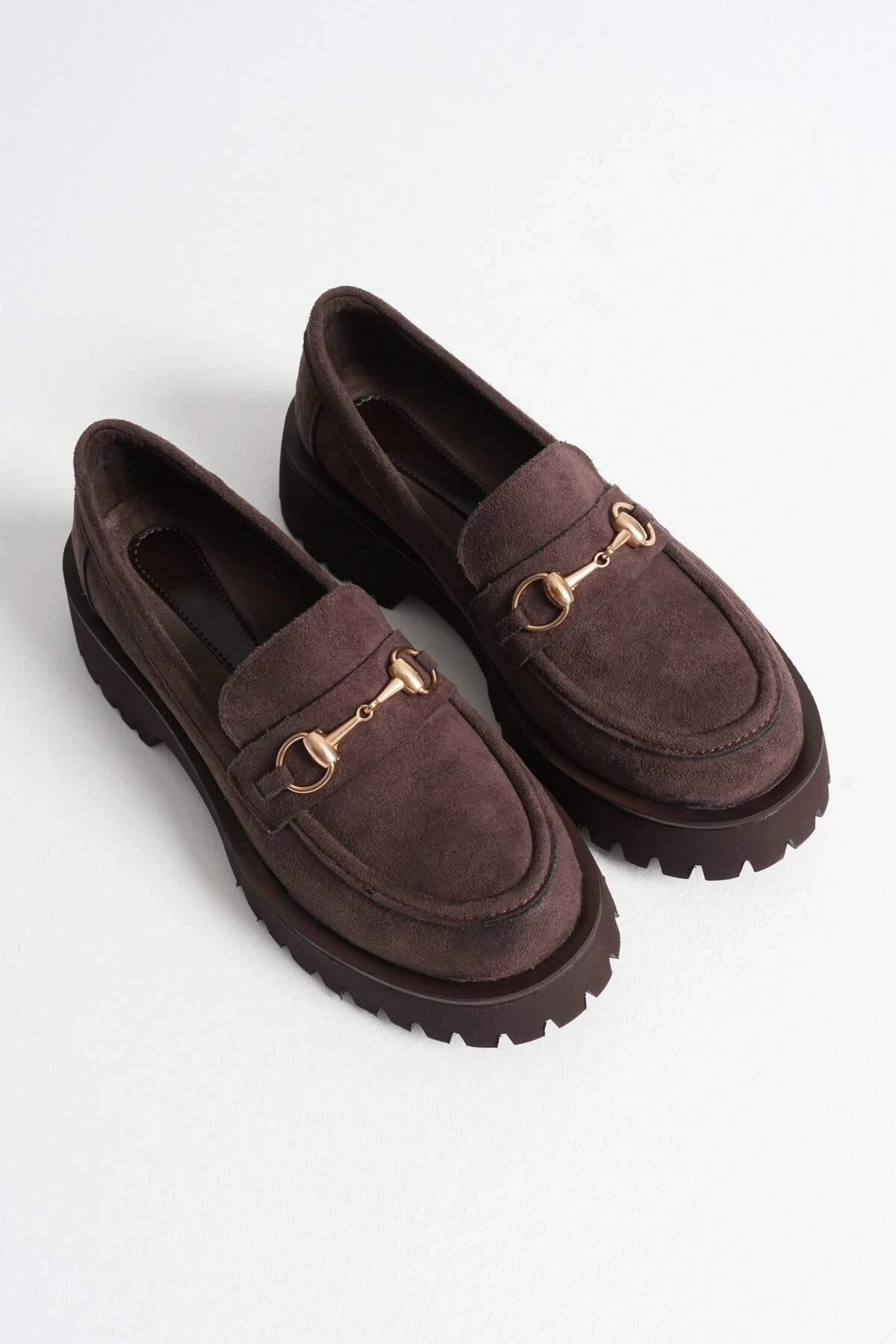 Lara Toka Detaylı Acı Kahve Süet Günlük Loafer Ayakkabı