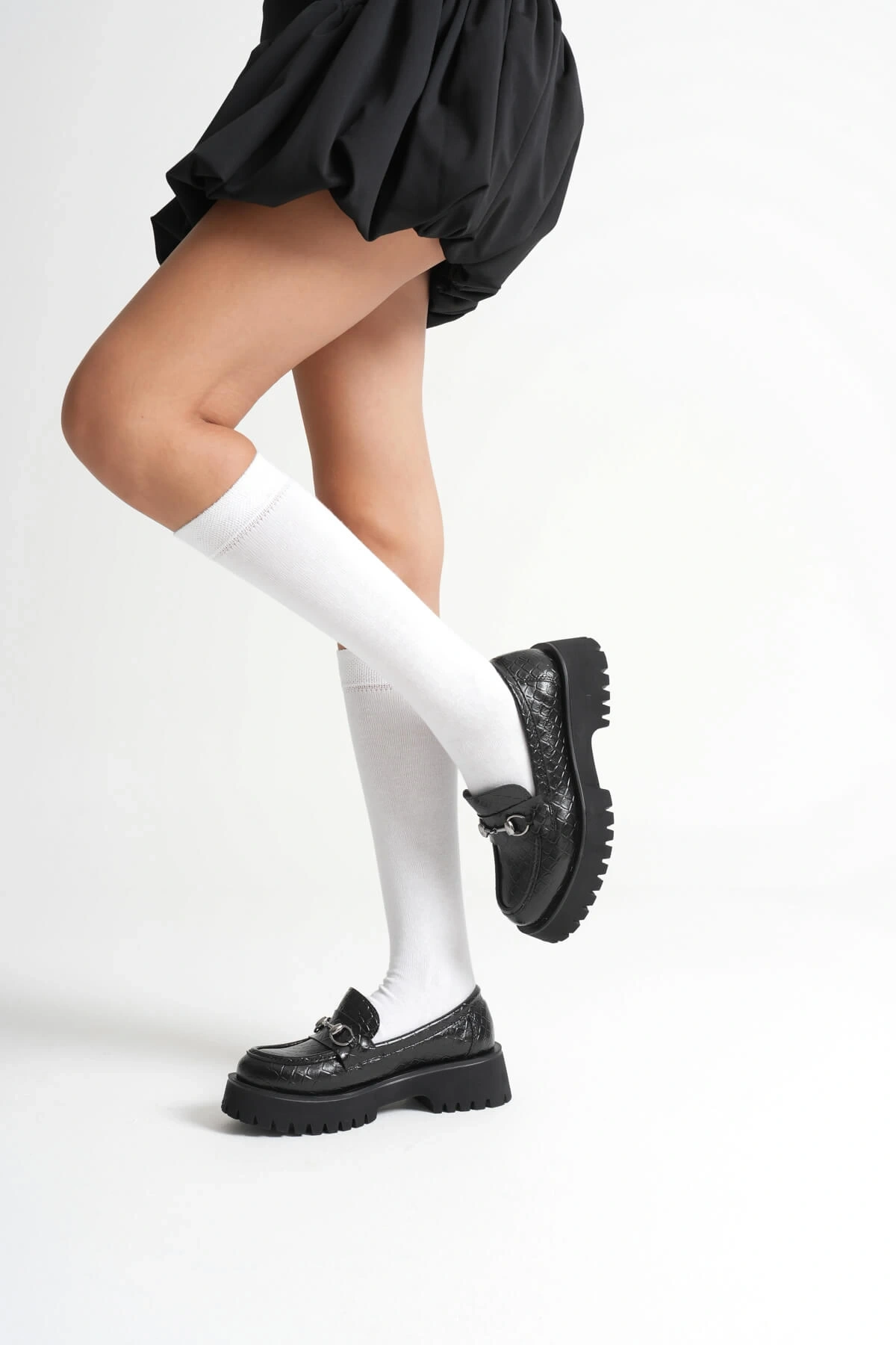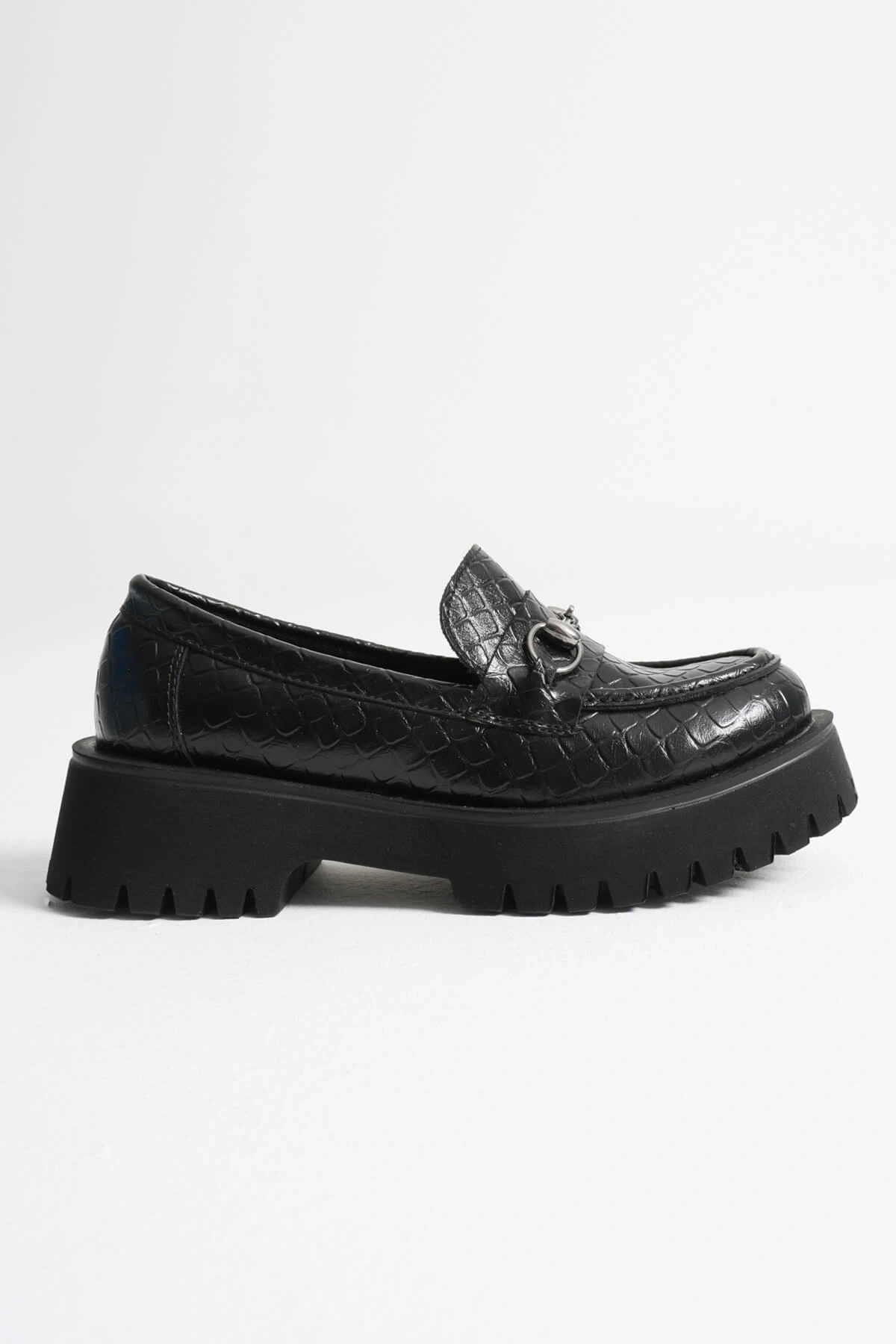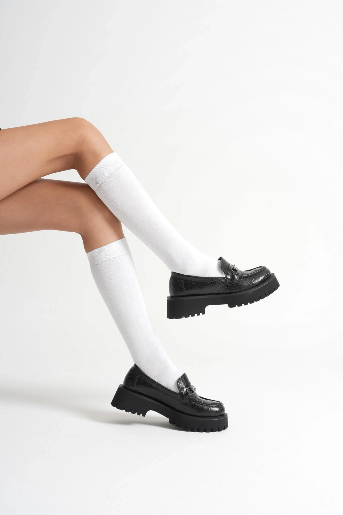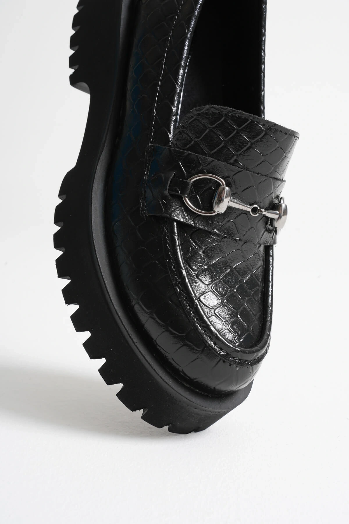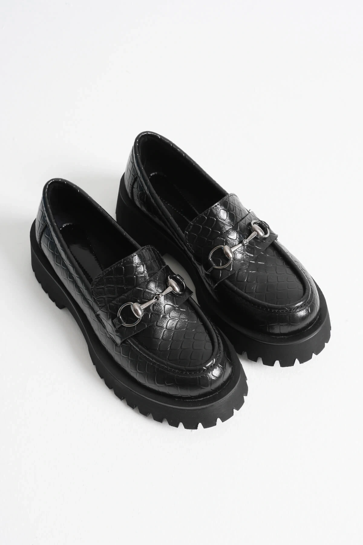 Lara Toka Detaylı Siyah Kroko Baskılı Günlük Loafer Ayakkabı
