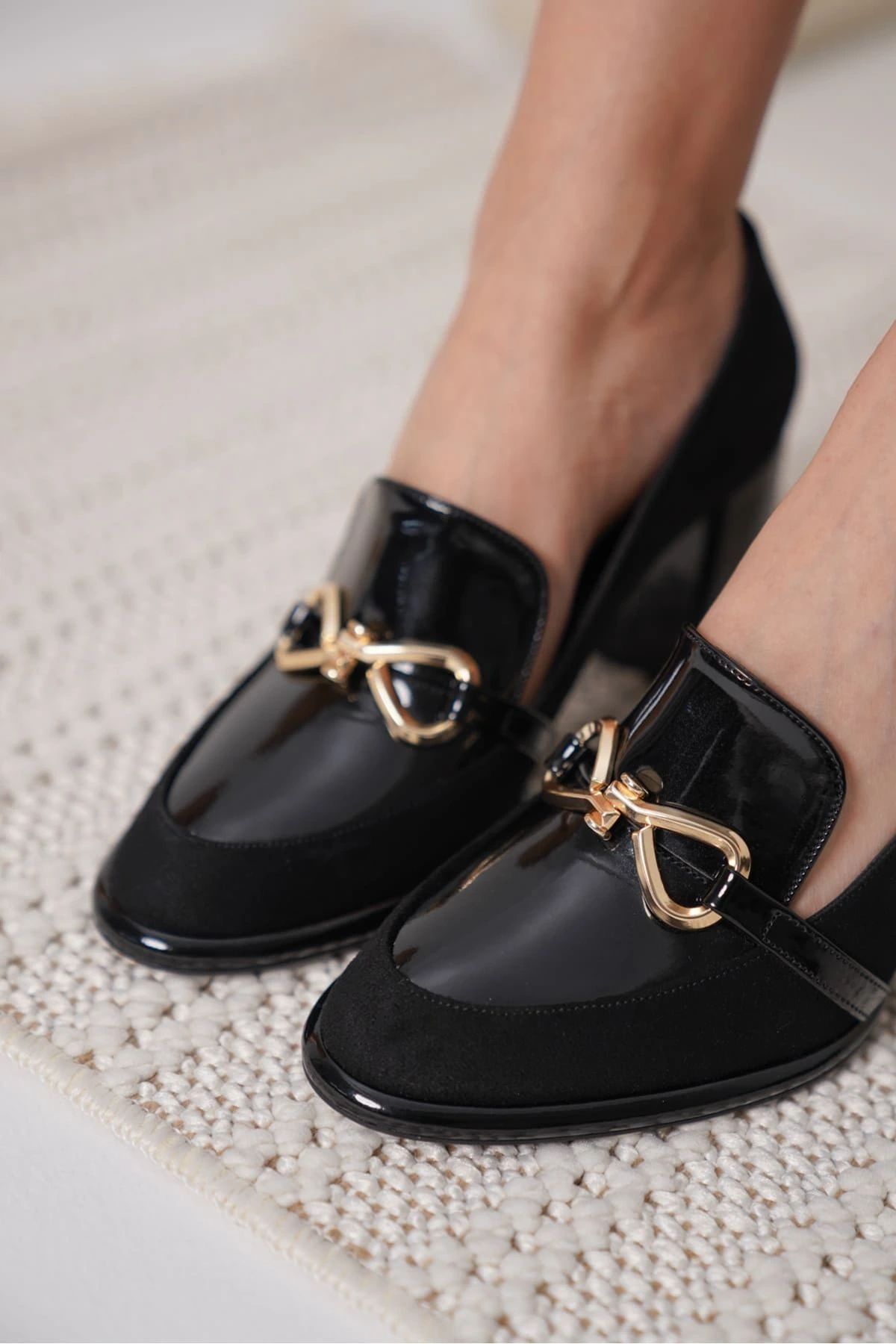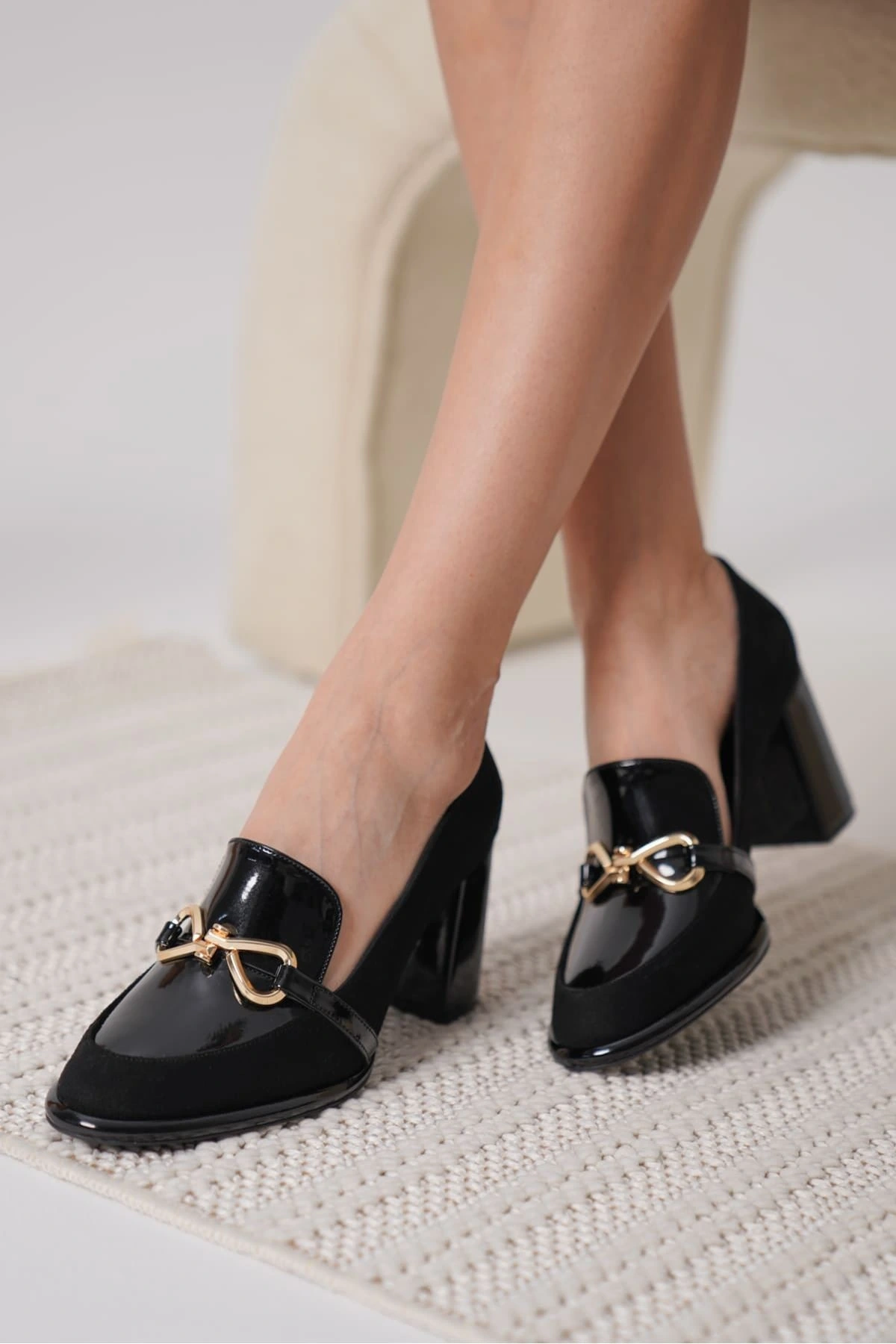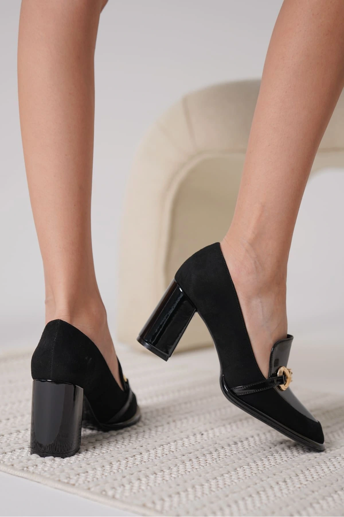 Melly Siyah Rugan Süet Detaylı Kadın Topuklu Ayakkabı