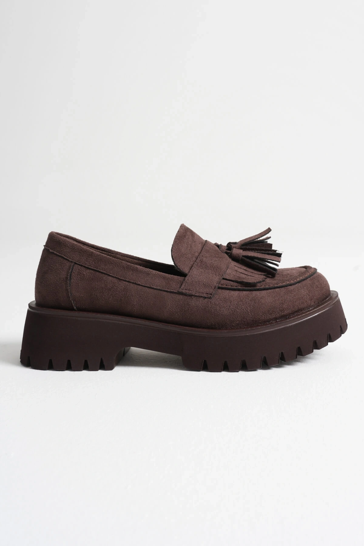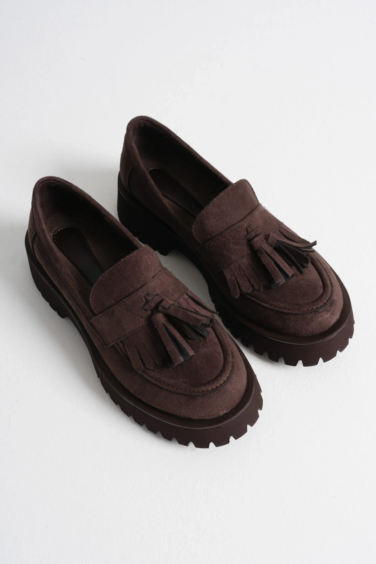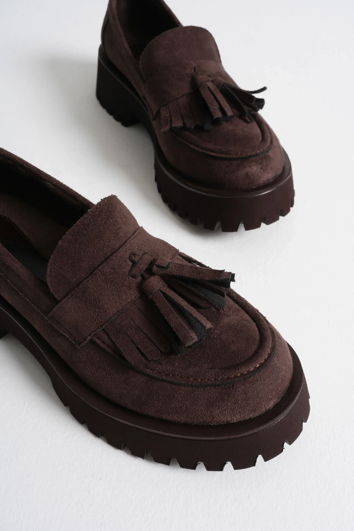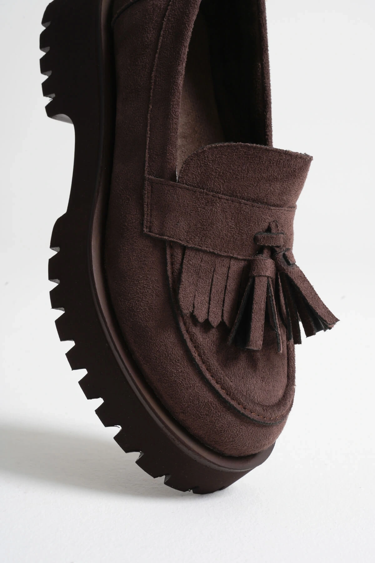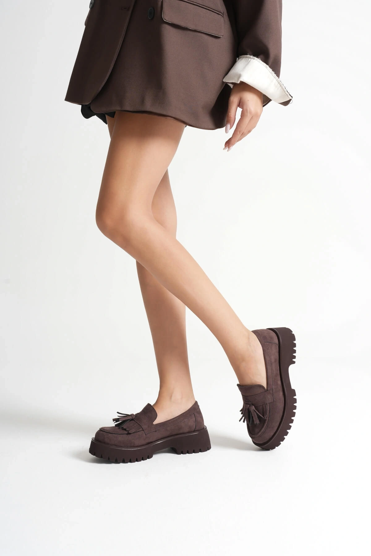 Mina Kadın Günlük Acı Kahve Süet Loafer Ayakkabı