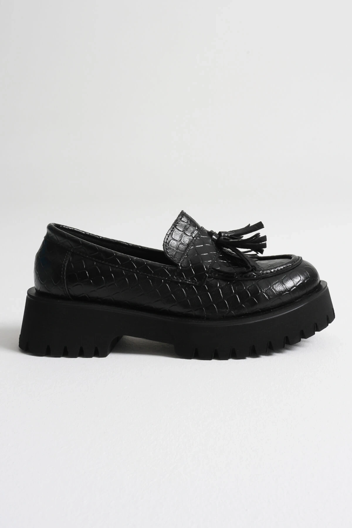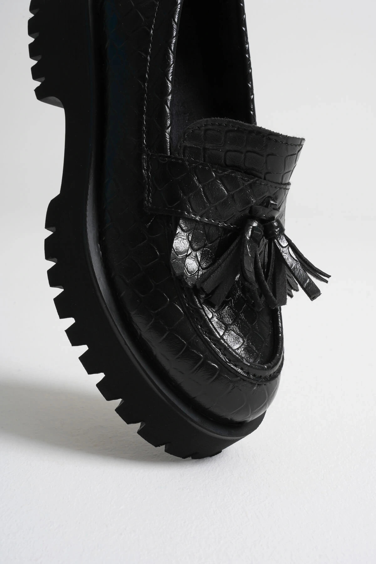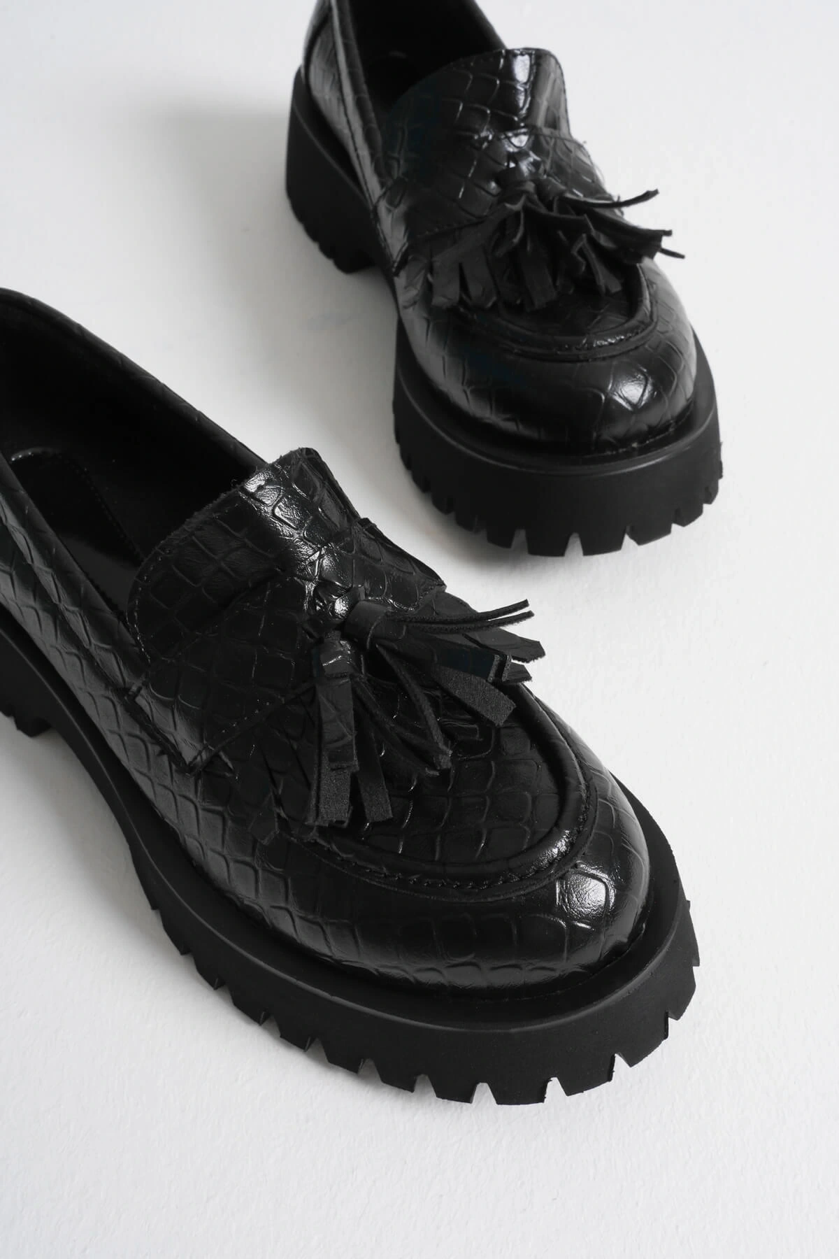 Mina Kadın Günlük Siyah Kroko Baskılı Loafer Ayakkabı