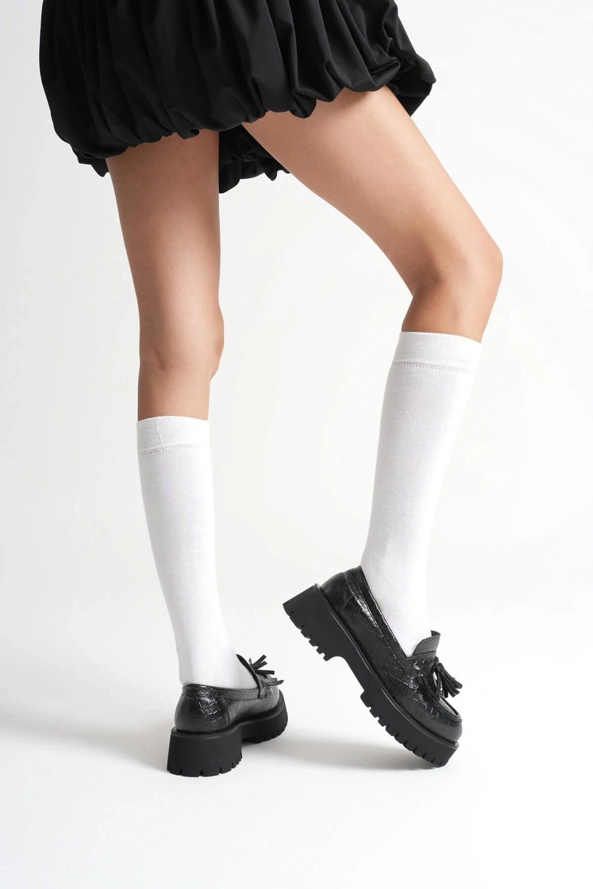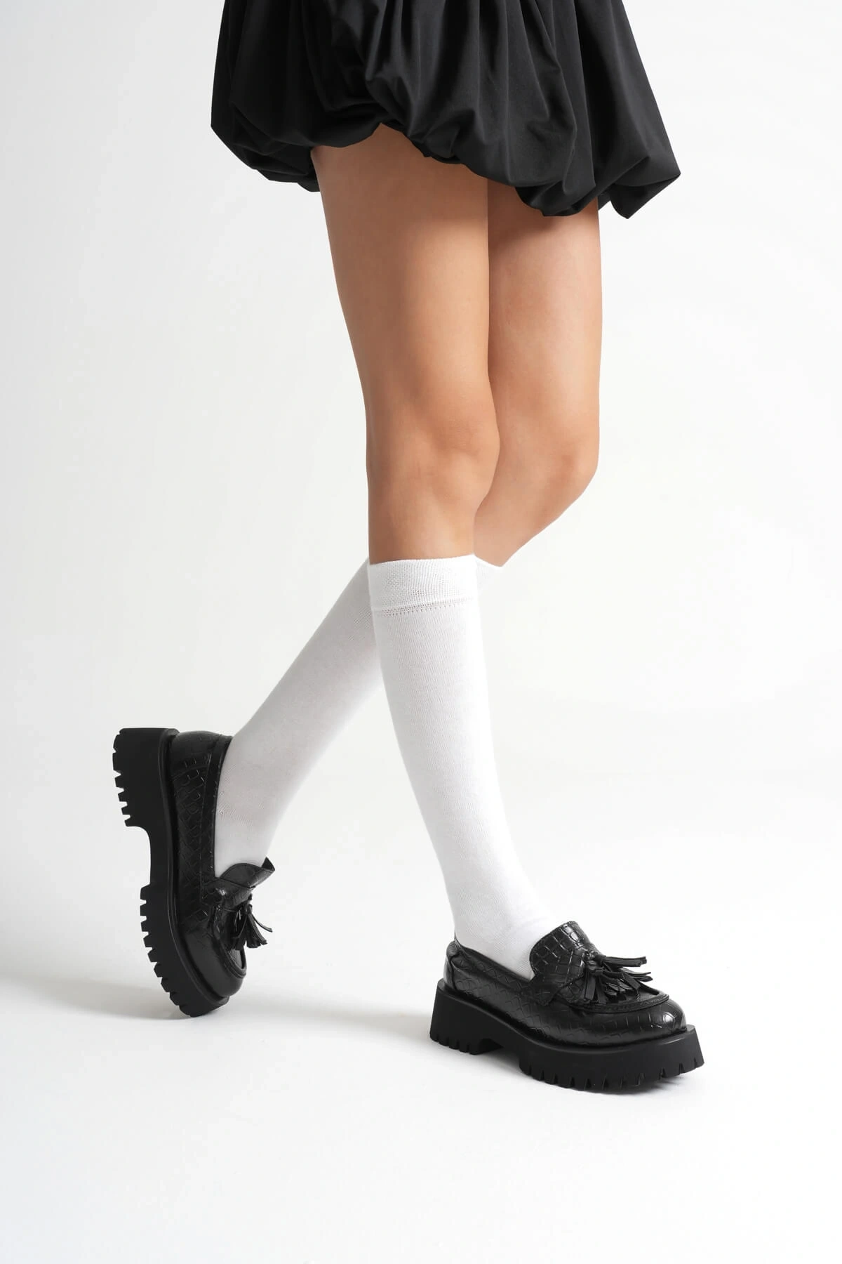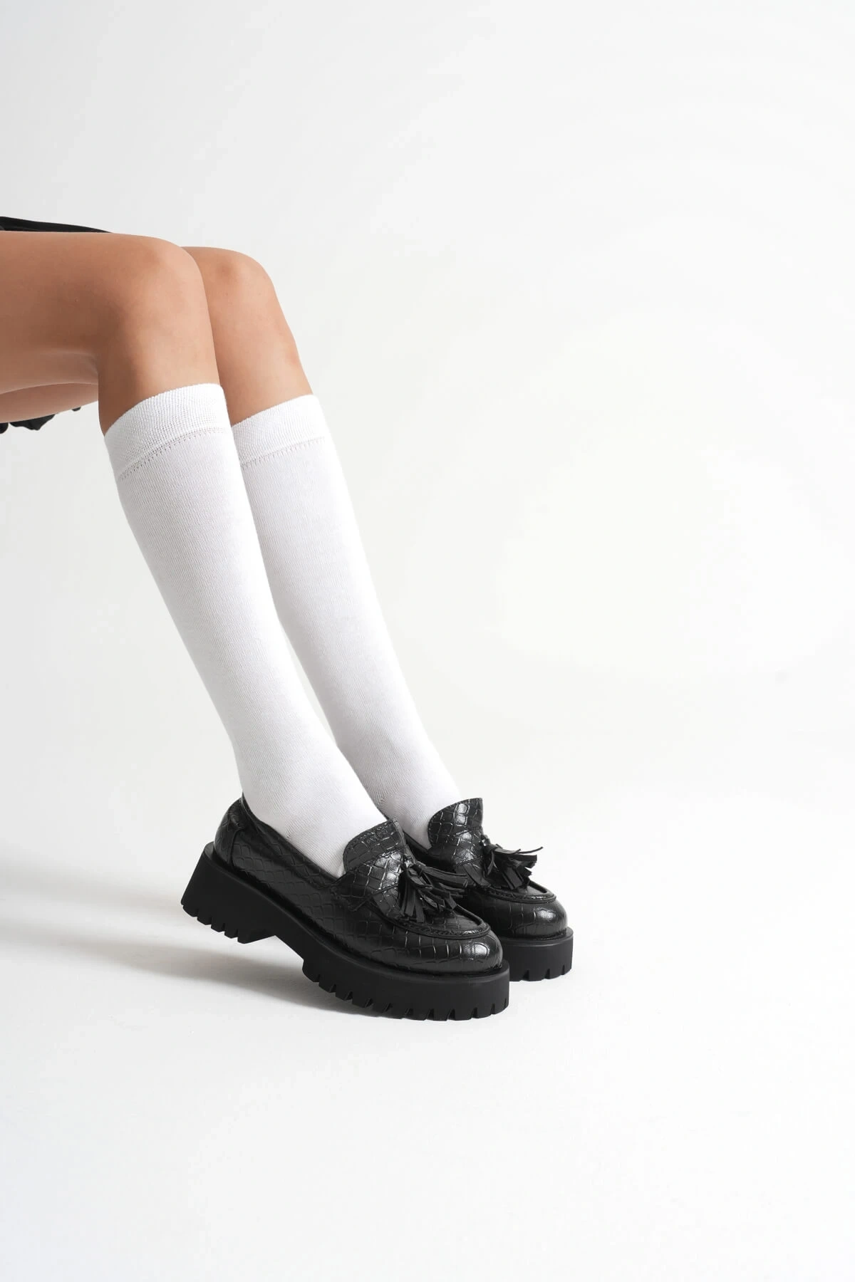 Mina Kadın Günlük Siyah Kroko Baskılı Loafer Ayakkabı