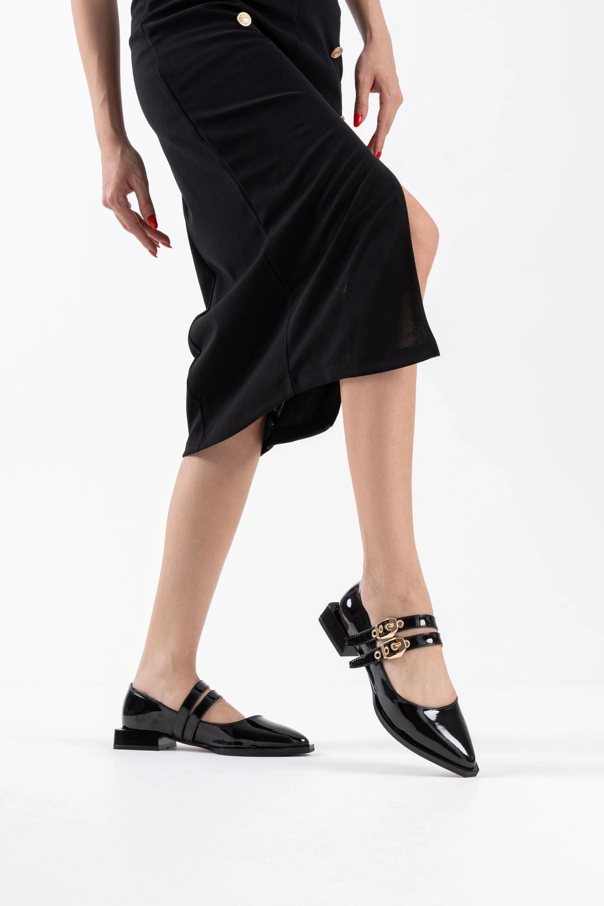 Murder Siyah Rugan Kemer Detaylı Kadın Topuklu Ayakkabı