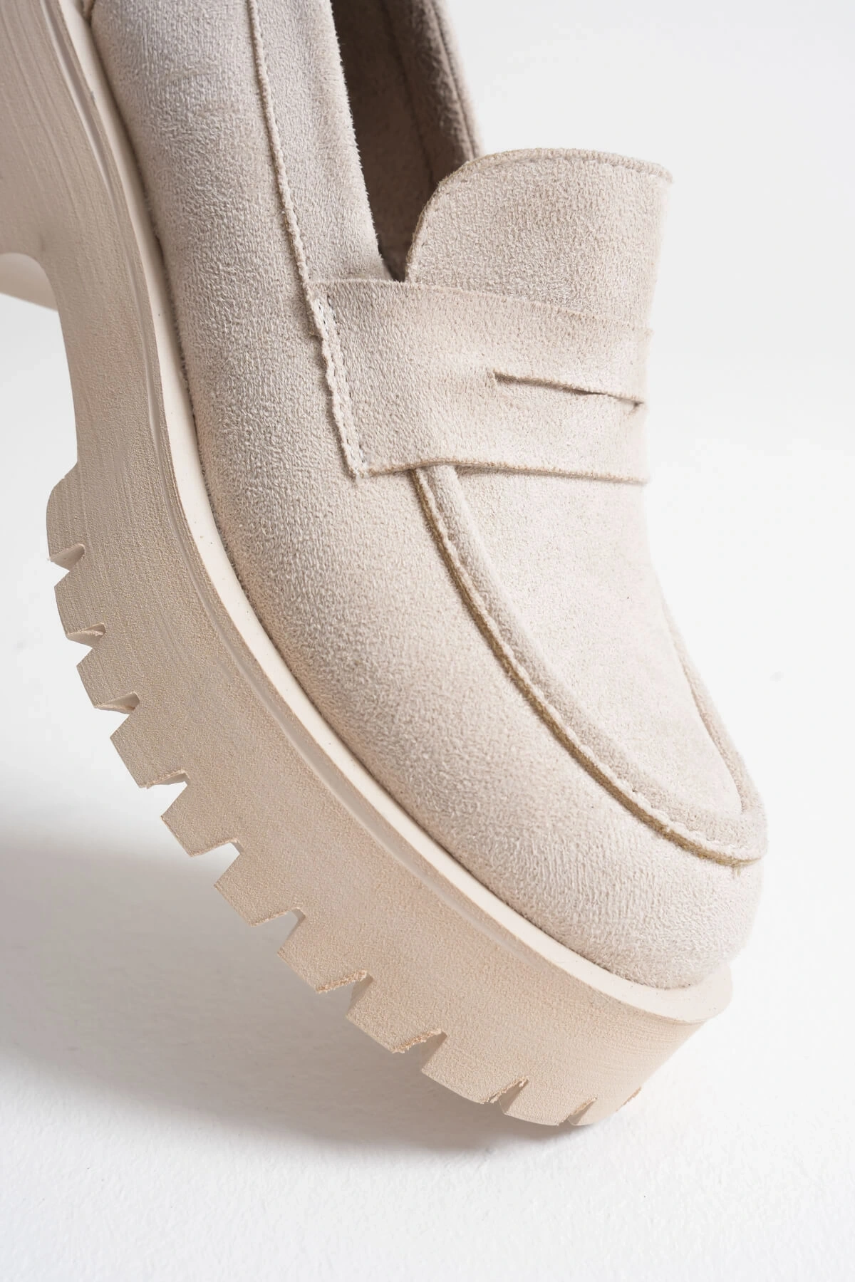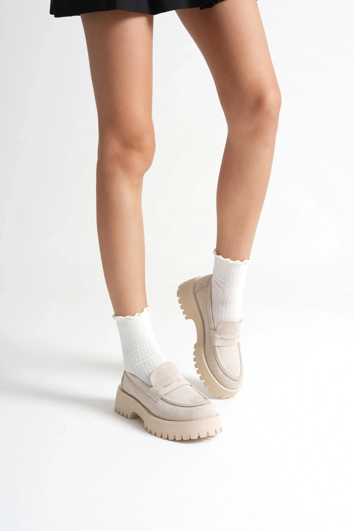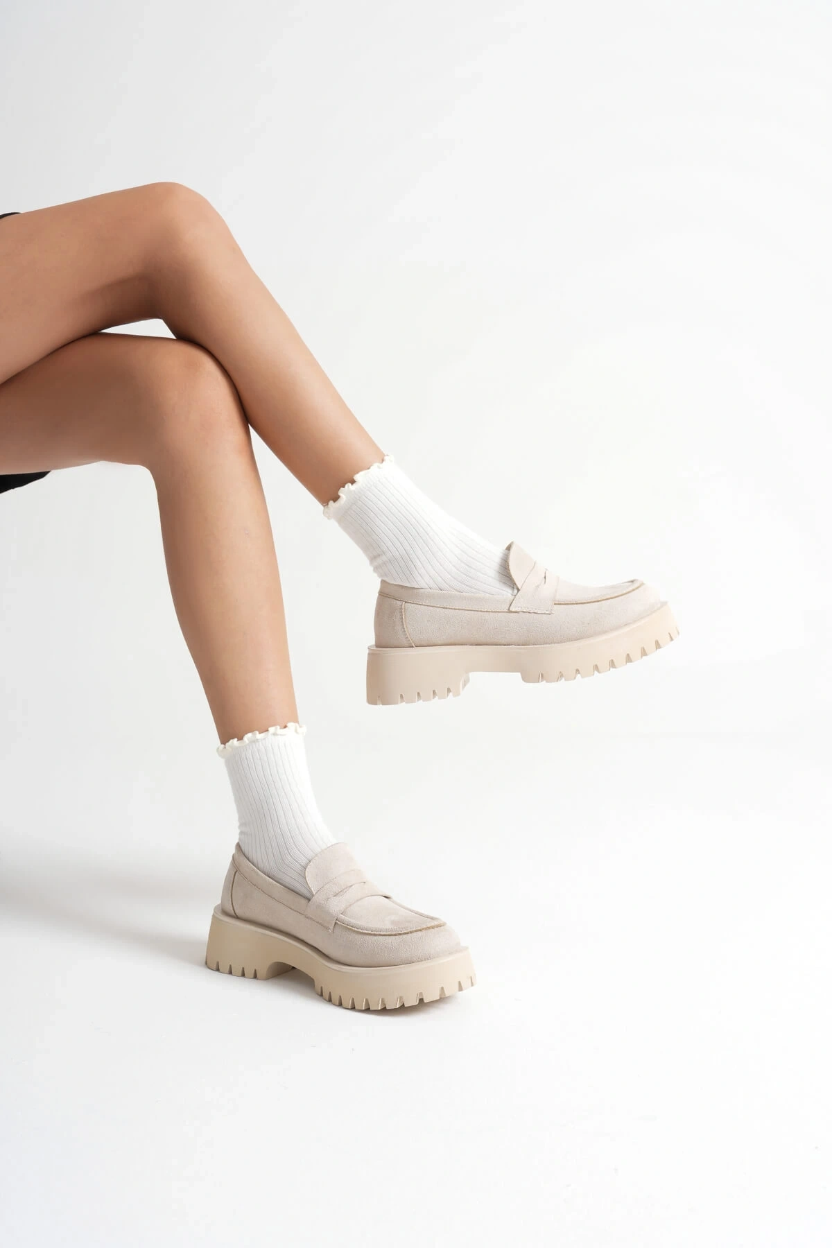 Noir Kadın Günlük Bej Süet Loafer Ayakkabı