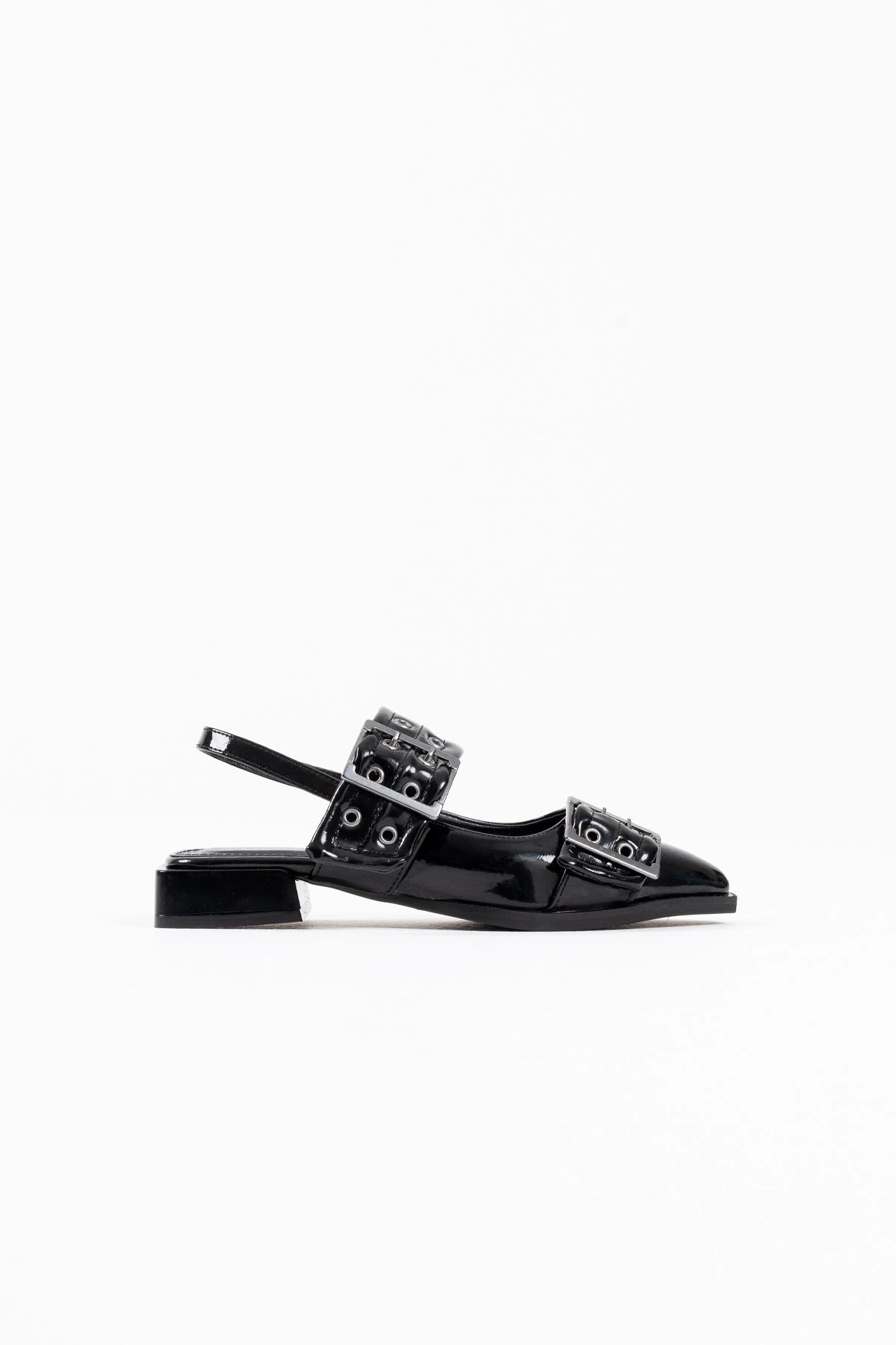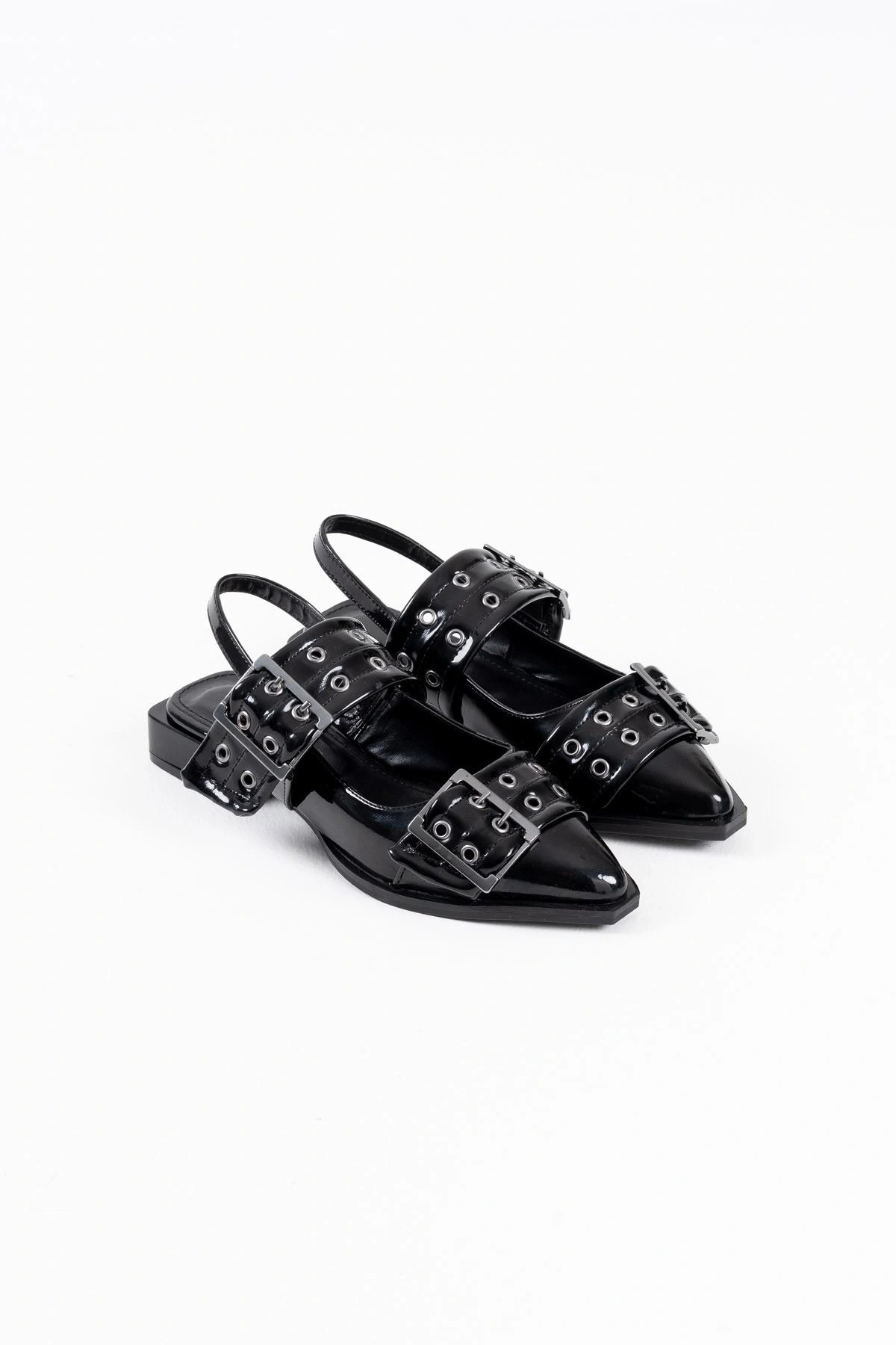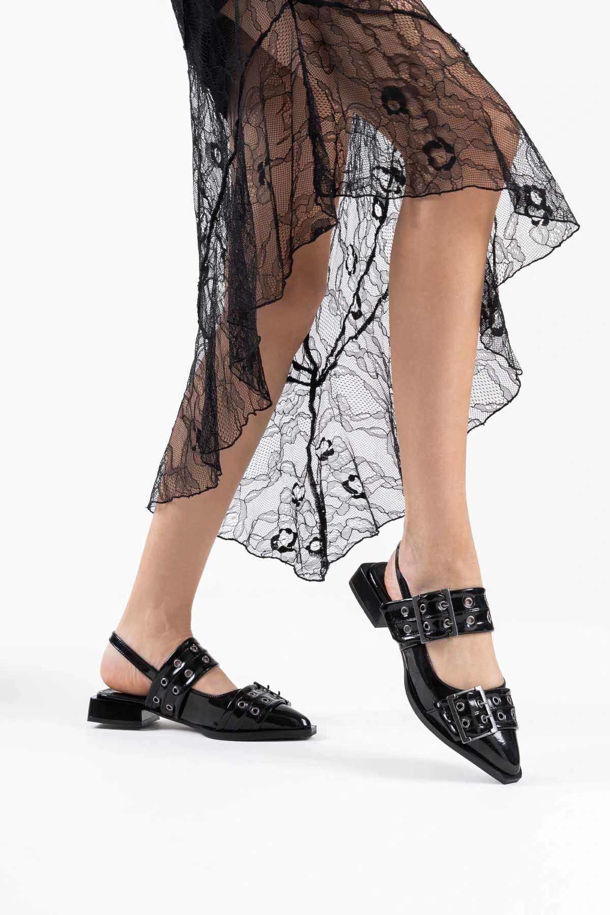 Pony Siyah Rugan Kemer Detaylı Kadın Topuklu Ayakkabı