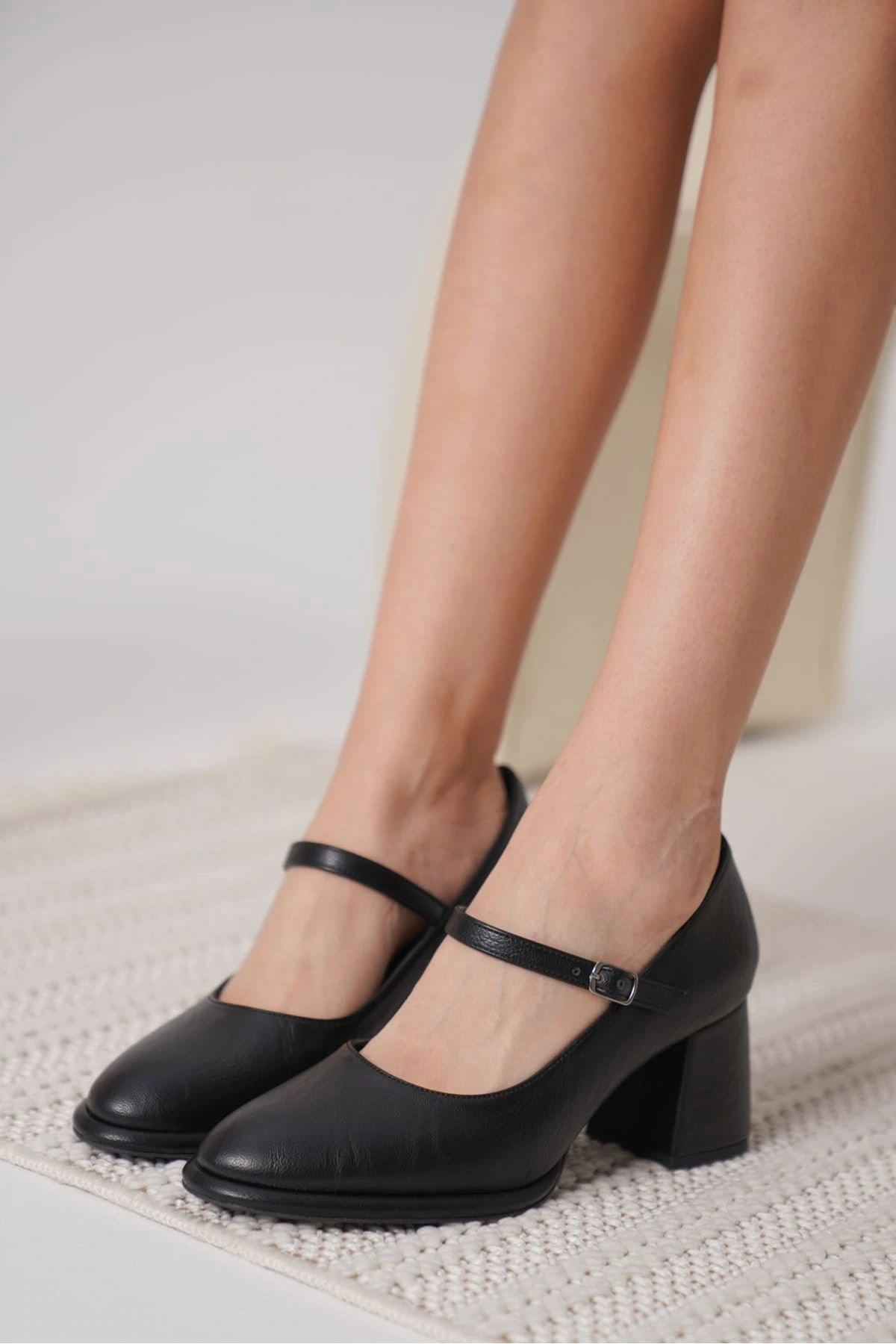 Slay Siyah Cilt Kadın Topuklu Ayakkabı