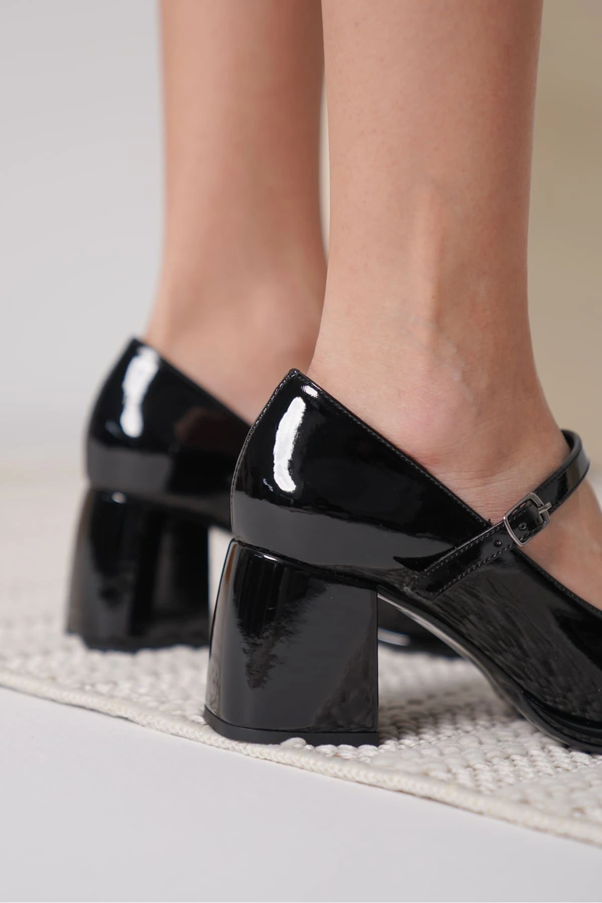 Slay Siyah Rugan Kadın Topuklu Ayakkabı
