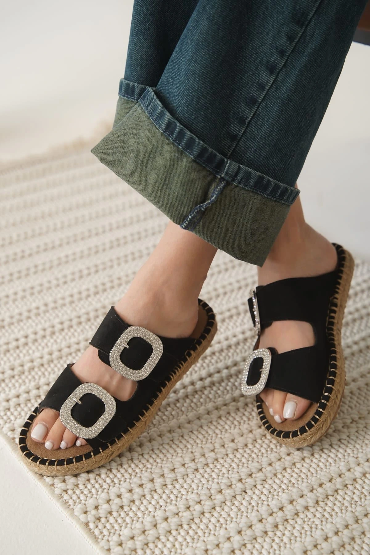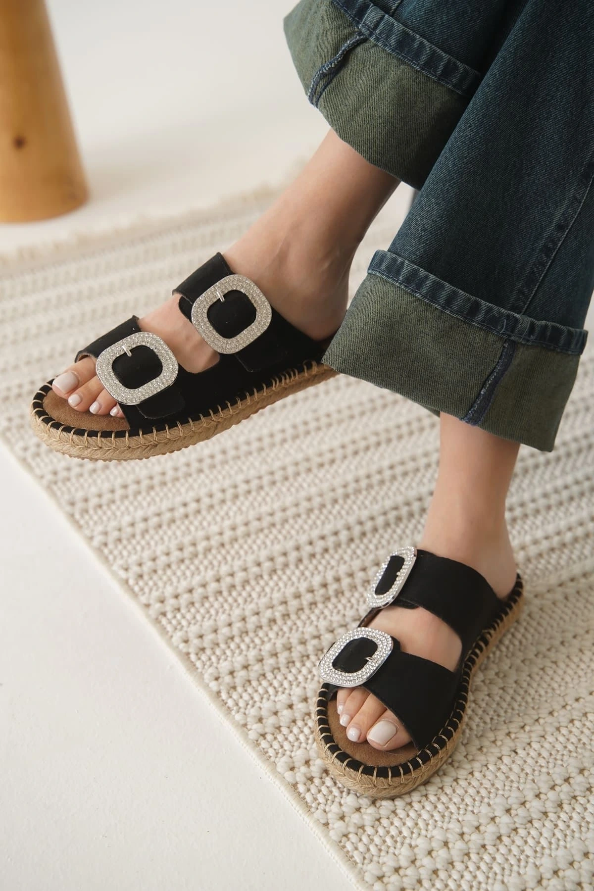 Tyna Süet Siyah Taşlı Kadın Terlik