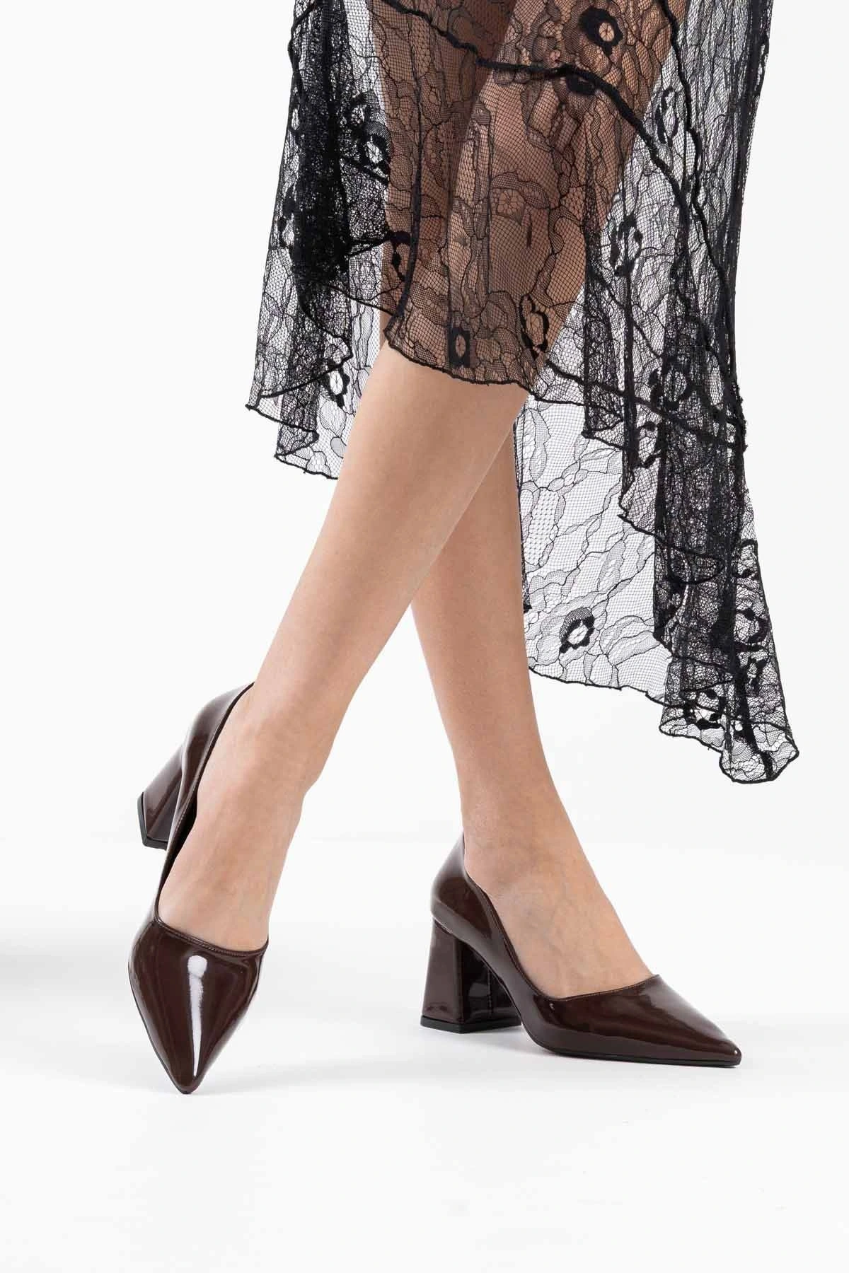 Valeria Acı Kahve Rugan Kadın Topuklu Ayakkabı