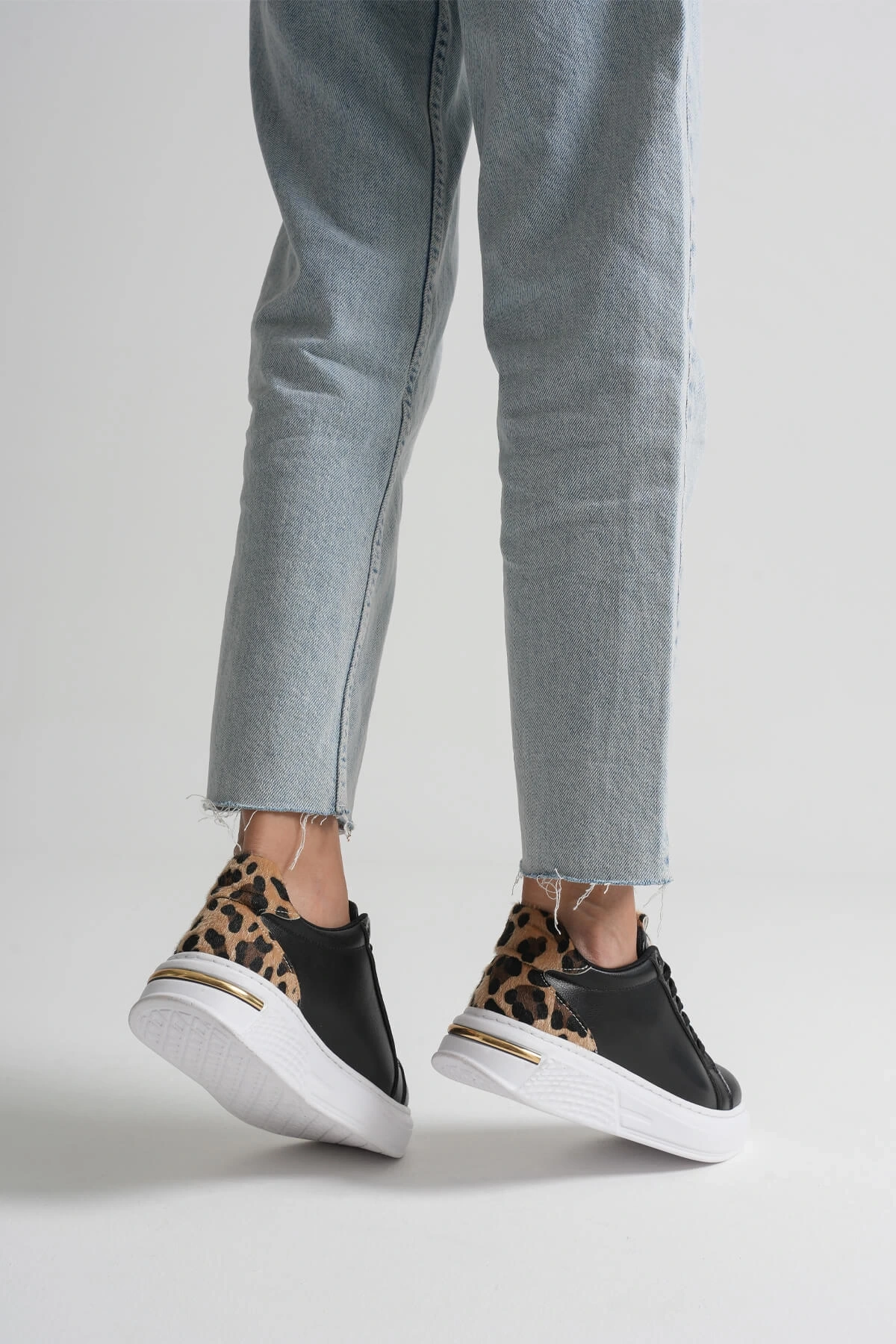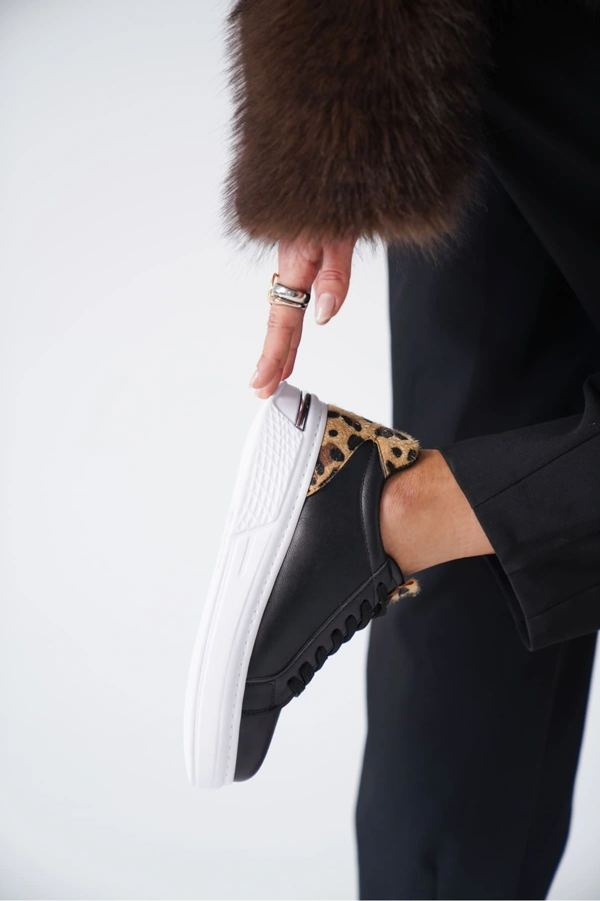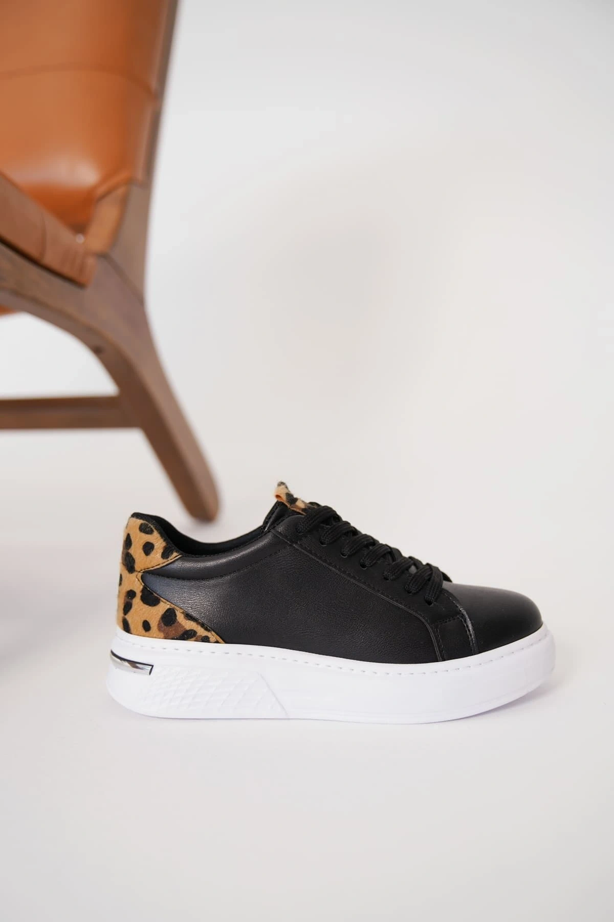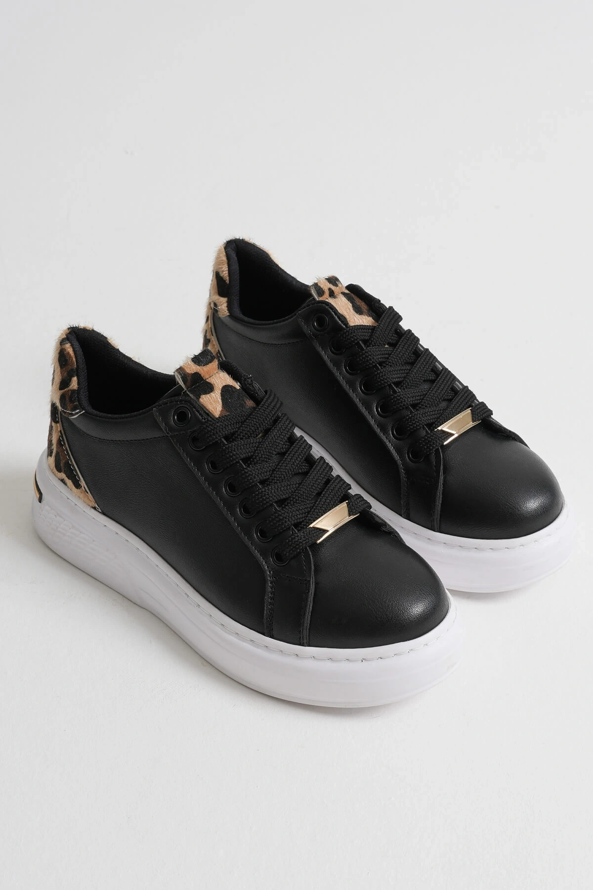 Vega Leopar Detaylı Siyah Kadın Spor Ayakkabı